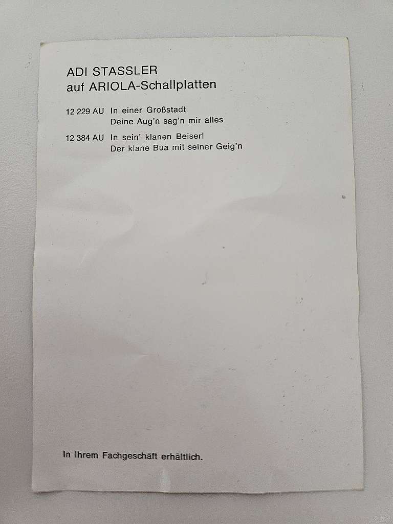 Autogrammkarte von Adi Stassler Wienerlied, Heuriger