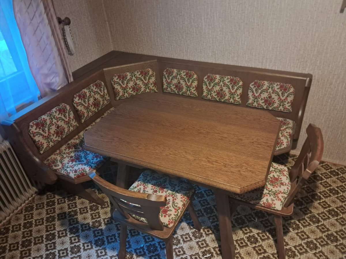 Verschenke gut erhaltene Eckbank mit Tisch und Stühlen.