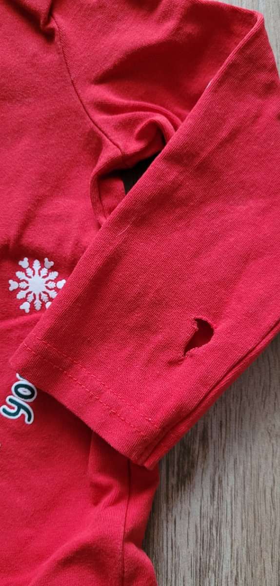 Hat ein Loch am Ärmel, vielleicht mag wer einen Kurzarmbody draus machen oder hat eine andere Idee Versand erfolgt nur mit anderen Artikeln gemeinsam