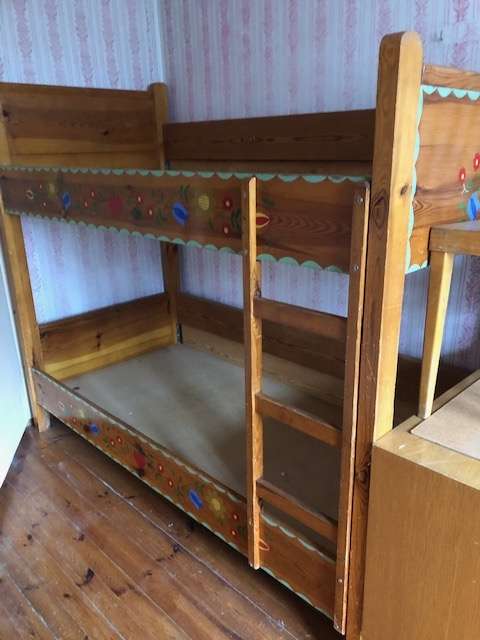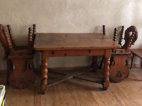 Auf Grund einer Haushaltsauflösung werden folgende Möbel gegen Selbstabholung verschenkt: Tisch mit vier Sessel (gedrechselt): Tisch 121 x 80 / 76 hoch. Kinderzimmer: Stockbett – H 170 / B 200 / T 97; Schreibtisch – H 74 / B 166 / T 49; 2 kleine Kasterl...