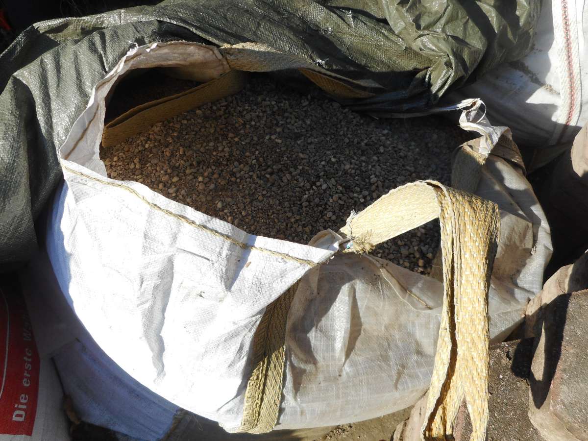 5 BIG-BAG Pflastersteine SPLITT vorhanden, Abholung mit Kran erforderlich. Der Splitt war auf der Terrasse unter den sechseckigen Pflatersteinen verlegt. Grund der Entfernung: es werden Fliesen verlegt. Tel.