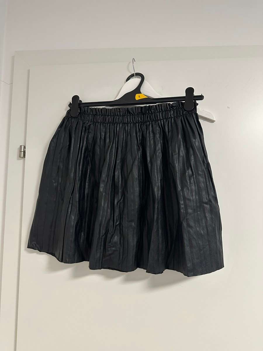 Schwarzer Kunstleder Rock Mit Falten Schwarz Größe L