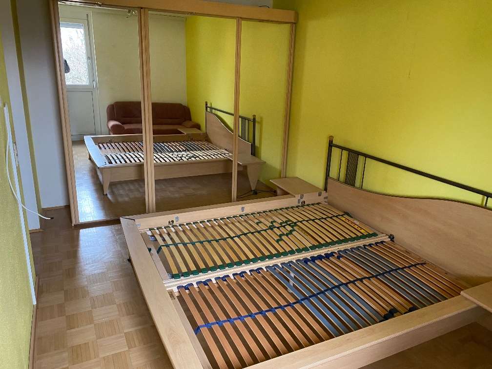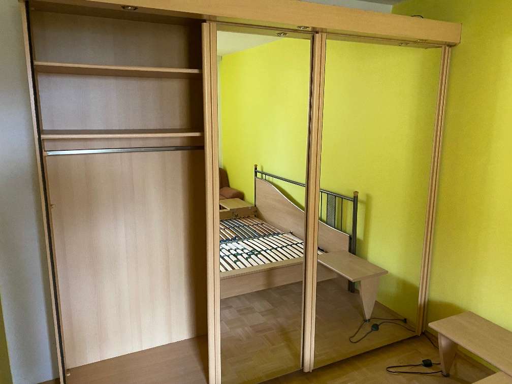 Schwebetürschrank mit Spiegeltüren und Doppelbett mit Lattenrost Holz in Buche Selbstabholung