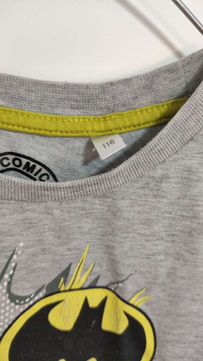 Graues Kinder T-Shirt mit Comic-Motiv (Batman, Superman und „Boom“-Print). Größe 116 . Bequemes Shirt für Alltag oder Kindergarten. Gebrauchter Zustand mit normalen Wasch- und Tragespuren. Privatabgabe, keine Garantie oder Rücknahme.