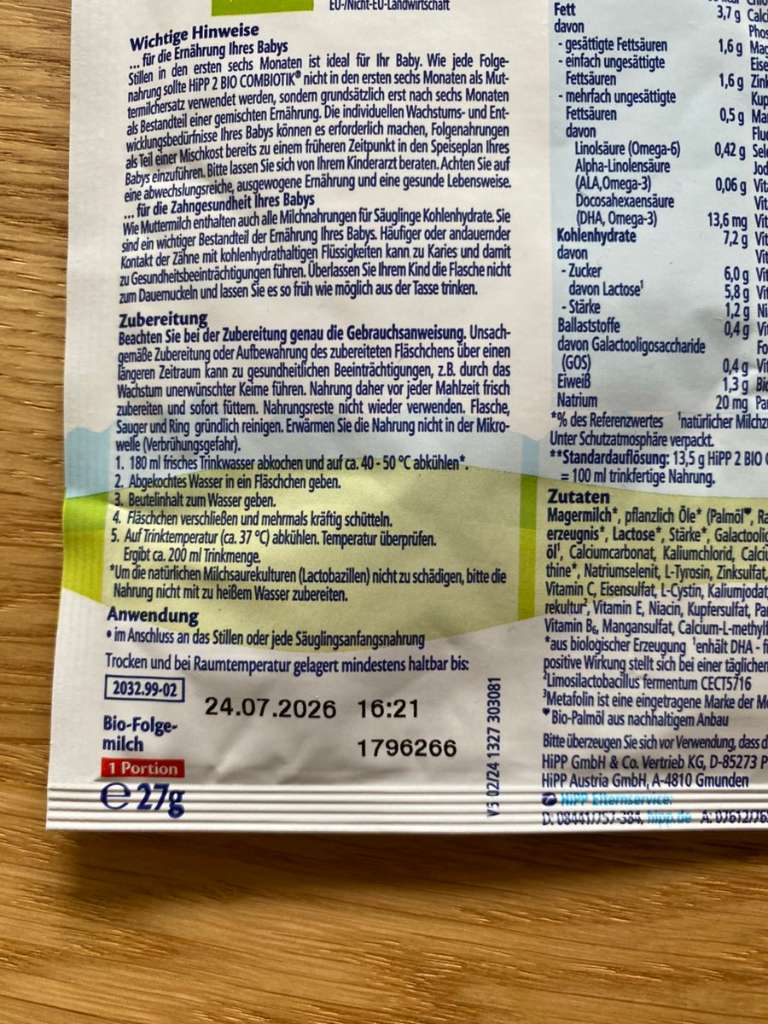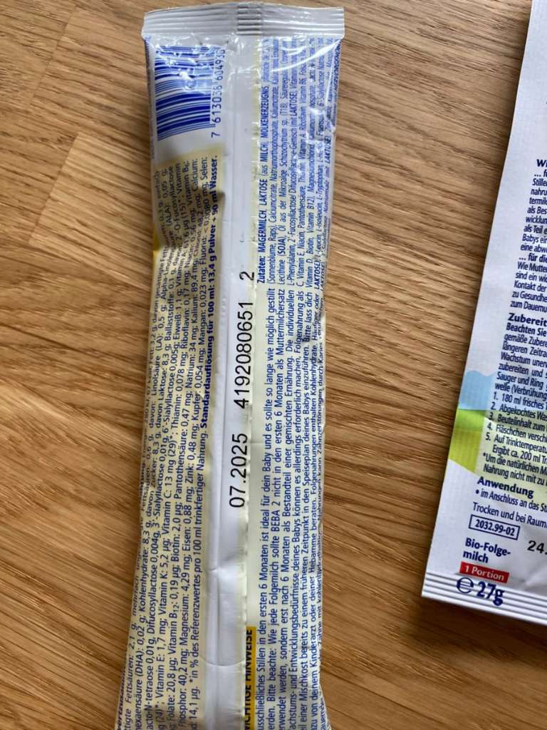 Folgemilch probepackung