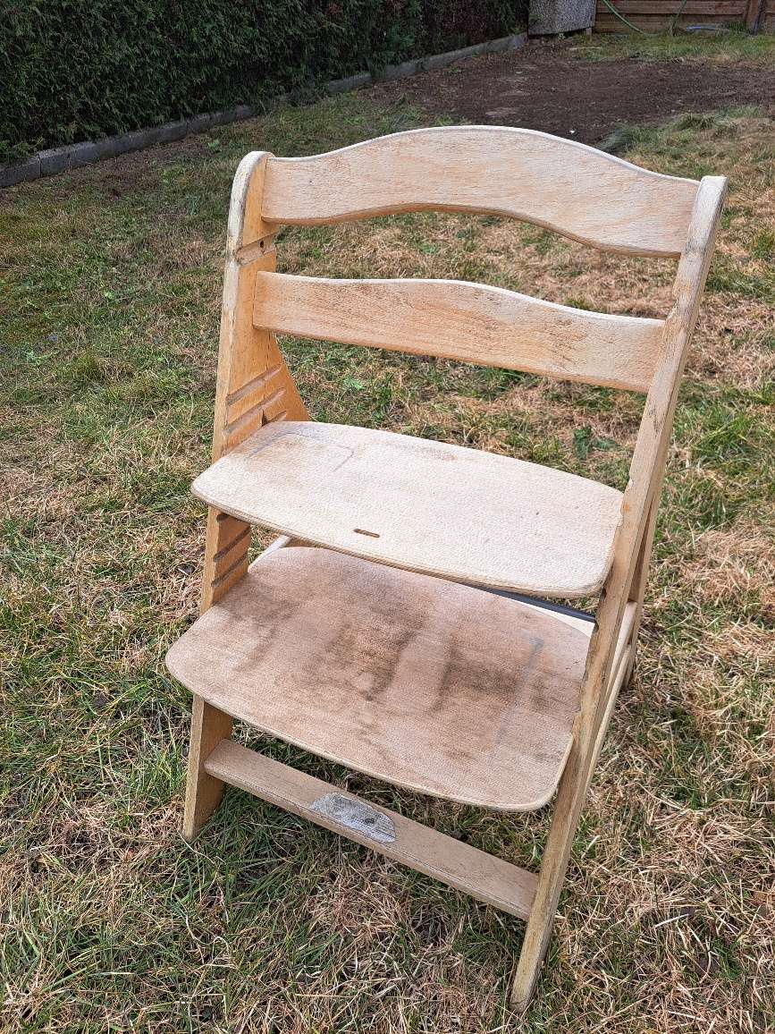Hochstuhl wurde im Garten genutzt, daher schaut er nicht mehr allzu schön aus, ist aber noch voll benutzbar