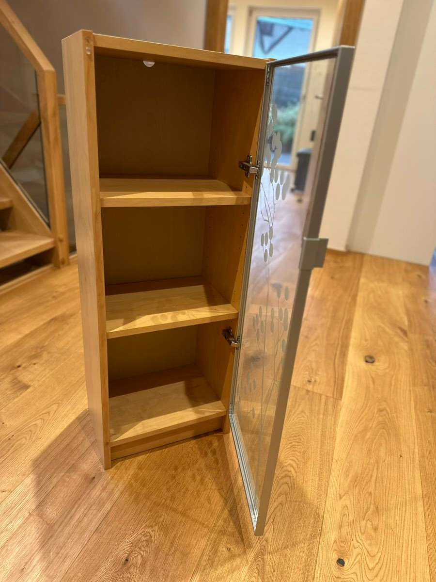 Billy Regal, mit Glastür und 3 Böden. Gebrauchsspuren siehe Fotos. Nur Abholung.