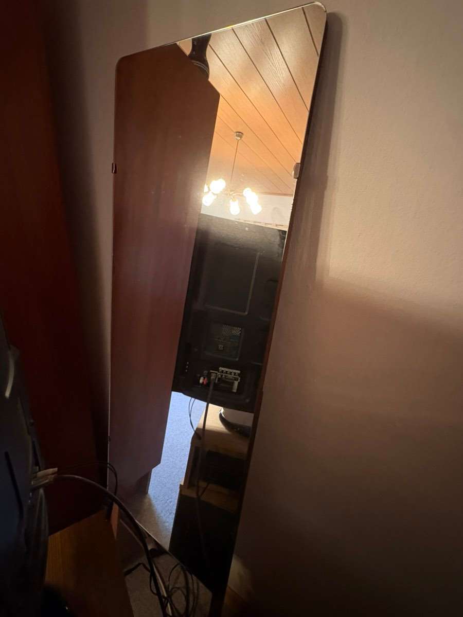 Großer Standspiegel auf Holzfüßen zu verschenken. Abholung oder Übergabe im Raum Gleisdorf, Weiz oder Graz möglich.