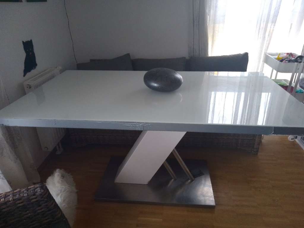 Verschenke großen Glastisch. Sehr robust und massiv Länge 160, Breite 90 und Höhe 77