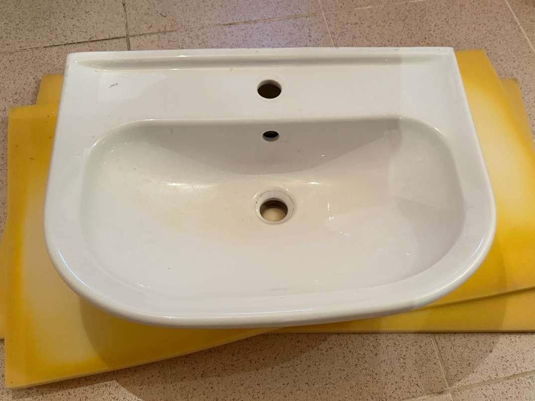Verschenke ein Waschbecken in der Größe 60 x 44 cm . Das Becken wurde nach dem Einzug in eine neue Wohnung gegen ein anderes getauscht und ist daher gebraucht, aber neuwertig .