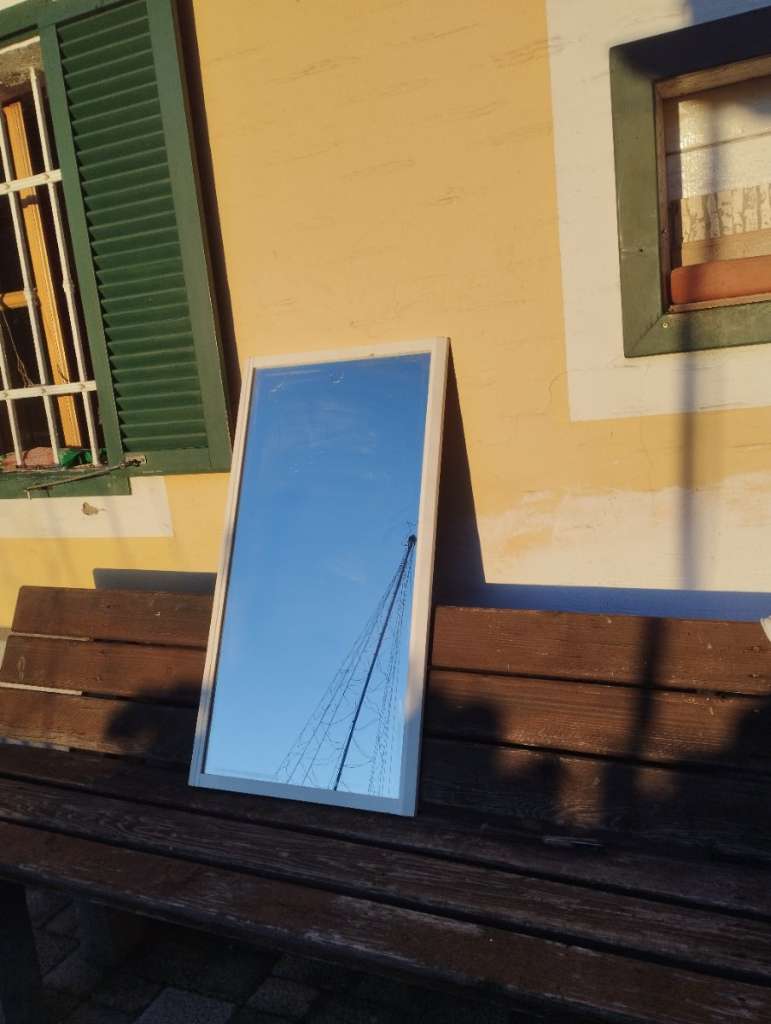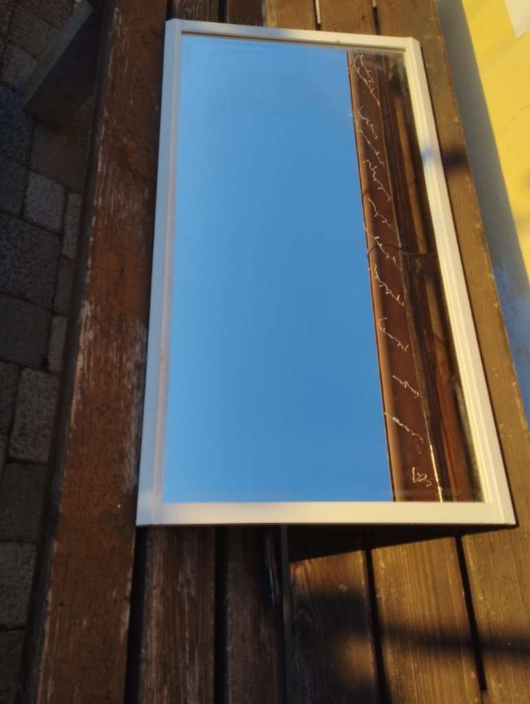 Spiegel weißer Rahmen aus Holz zum Streichen da er schon lange herum stand Spiegel aber in Ordnung 50 x 95 cm für Bad oder Vorraum