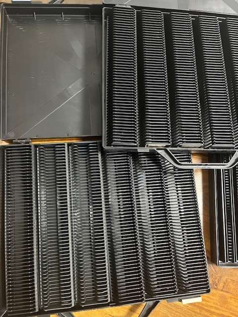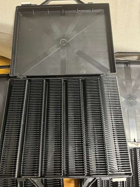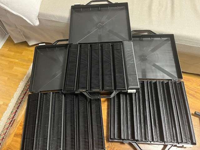 3 x DIA KOFFER mit je 5 Magazinen (Platz für 3 x 250 Dias = 750 Dias) + 2 x DIA KASSETTEN mit je 2 Magazinen (Platz für 2 x100 Dias = 200 Dias) NICHTRAUCHERHAUSHALT, TIERFREIER HAUSHALT - Magazine trocken im Wohnbereich gelagert - sichert Ihre Dias gegen...