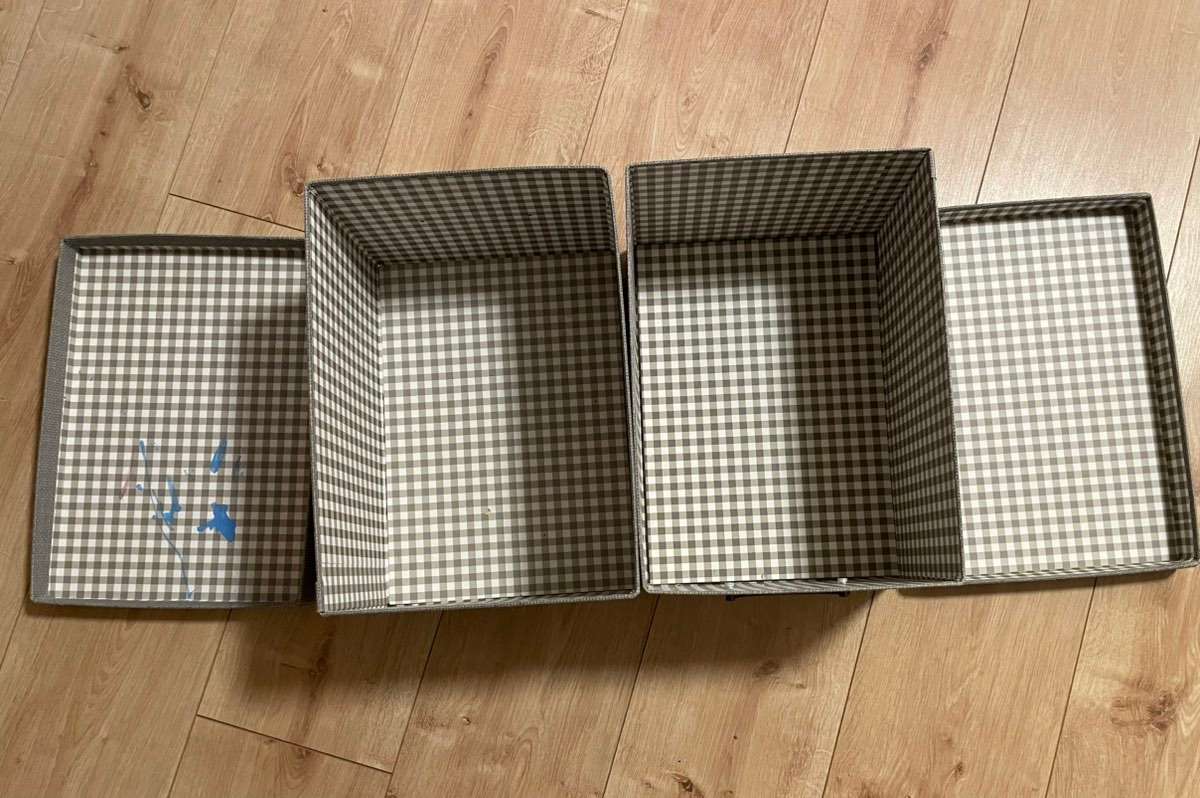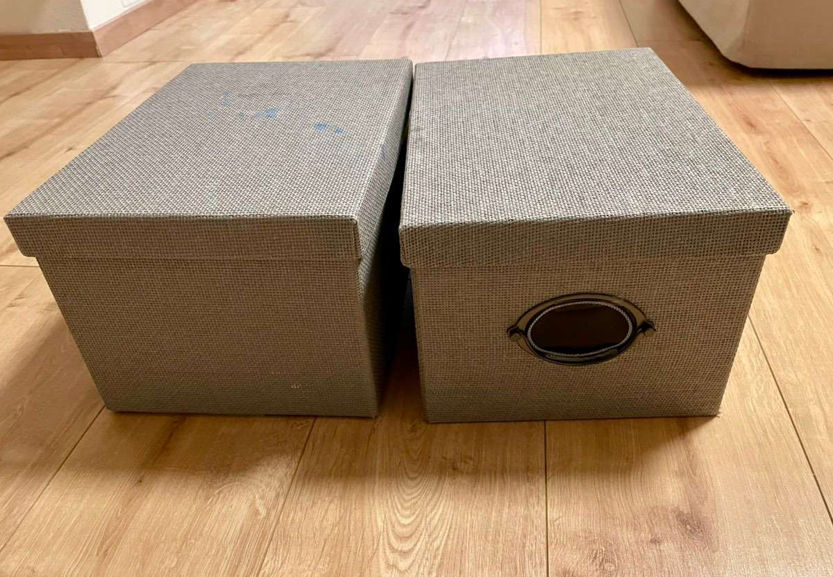 2 graue voll funktionsfähige Aufbewahrungskisten mit Deckel