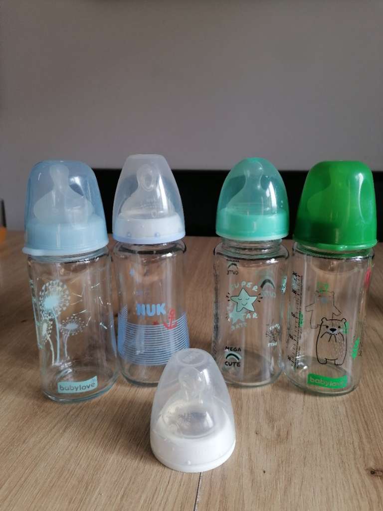 4 Glasfläschchen - 1x Nuk (+2. Sauger), 2x Babylove, 1x Müller