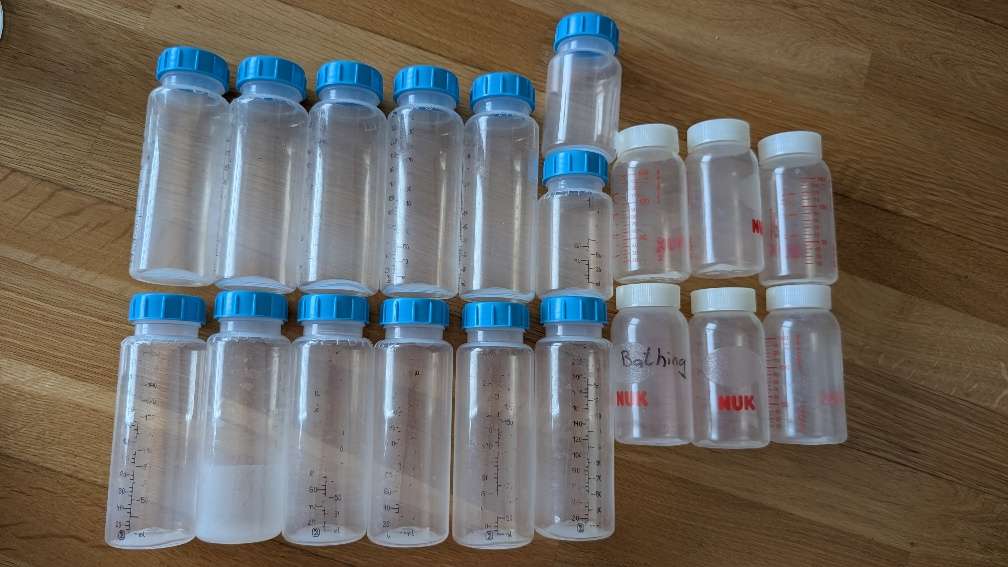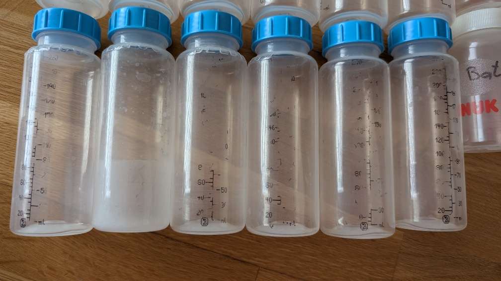 Verschenke ein Konvolut an Aufbewahrungsflaschen für Muttermilch oder Babynahrung. Menge: ca. 19 Flaschen in verschiedenen Größen (140-240 ml) Marken: Teilweise von NUK , teilweise andere Hersteller. Zustand: Gebraucht, aber gut erhalten. Alle Flaschen...
