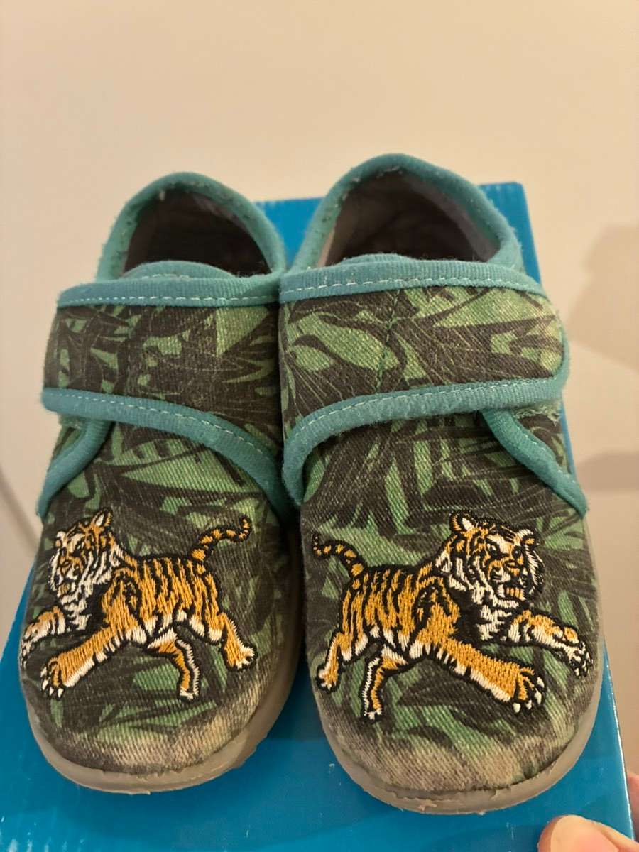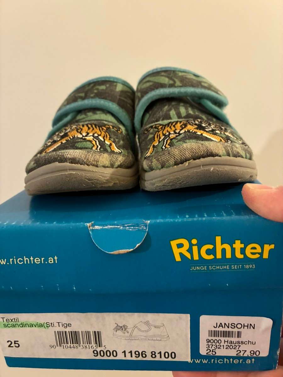 Verschenke gerne gebrauchte Hausschuhe in Gr. 25 von Richter mit Tigermotiv.