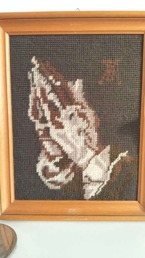 Aus Zeit der Großeltern..sehr alt Gobelin Albrecht Dürer betende Hände Eingerahmt..brauner Holzrahmen Ruckseite mit Klebeband Sehr schöner Zustand Keine Beschädigungen 100% Handarbeit Handgesticktes Bild mit dem bekannten Motiv der „Betenden Hände“ (nach...