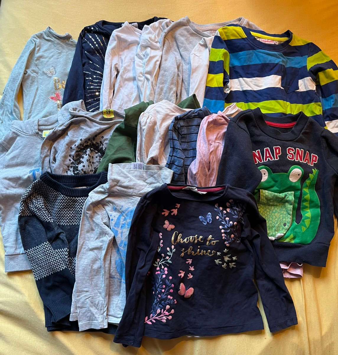 Verschenke dieses umfangreiche Bekleidungspaket für Babys/Kleinkinder in der Größe 74-116. Super Sachen dabei, kann gut als Basis dienen. Tierfreier Nichtraucherhaushalt.
