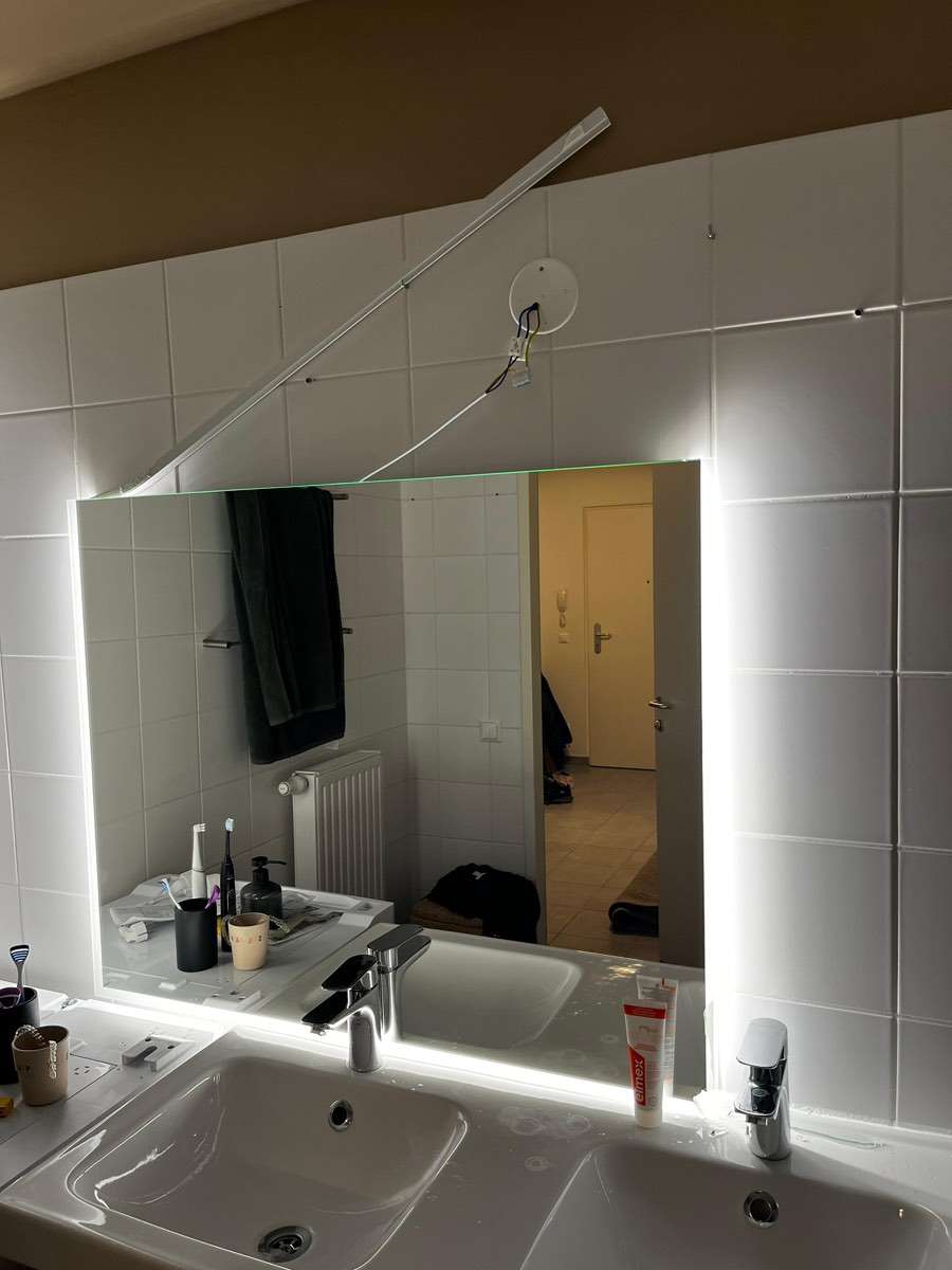 Unser neuer Spiegel ist leider kaputt - Ecke gebbrochen OHNE LED Band!!! Maße 1 m x 80 cm (rechte Ecke gebrochen) Vielleicht kann ihn trotzdem wer brauchen!
