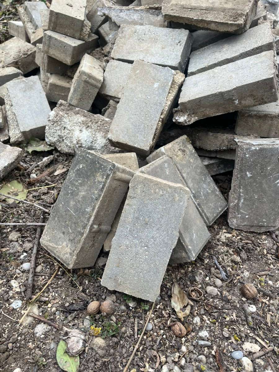 Verschenke ca. 200 Stück Beton Pflastersteine. Steine sind gebraucht, nicht gesäubert (siehe Bild)