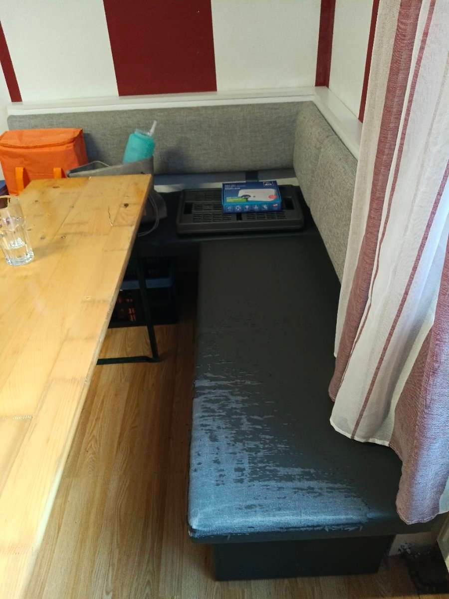 Verschenke Bank und einen Sessel . Nicht mehr schön, das einzige Problem ist das Leder geht komplett runter gehört alles neu bezogen . Sonst hat sie nichts