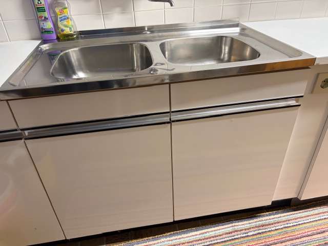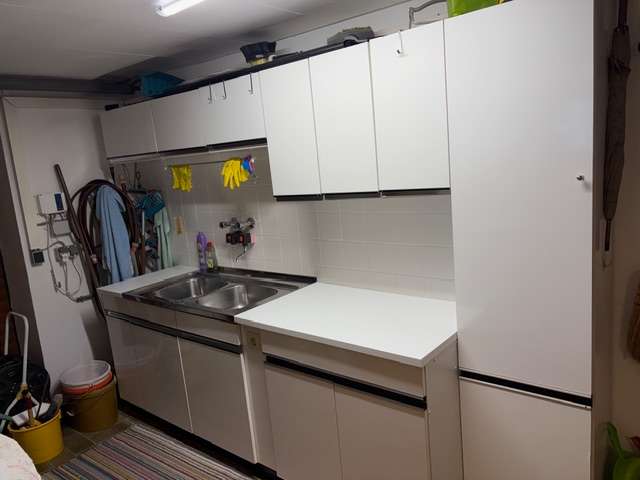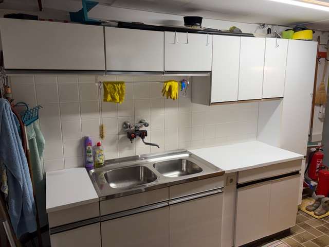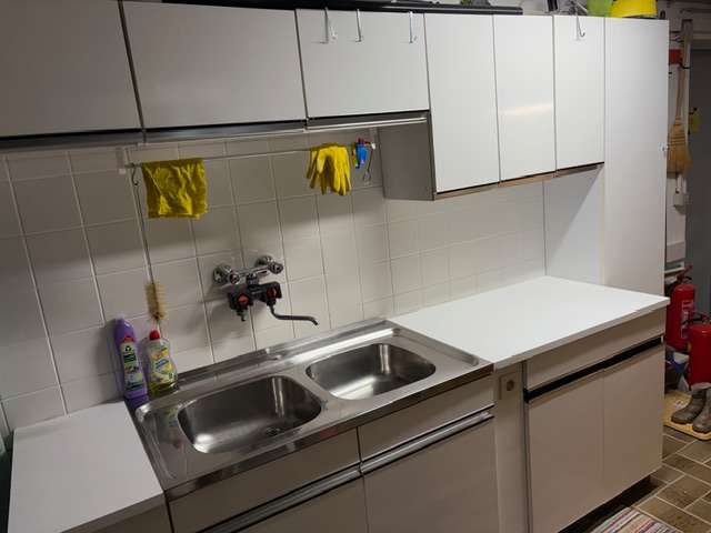 Küchenmöbel , Reginamöbel, ca 250 cm Arbeitsfläche mit Abwasch (davon Abwasch 100 cm - Abwaschunterschrank 100 cm, Doppelkastel 78,5 cm, schmales Kastl 30 cm, Hochschrank 44,5 cm) , ideal für Werkstätte, Waschküche oder Vorratsraum, Selbstabholung
