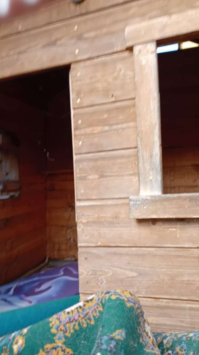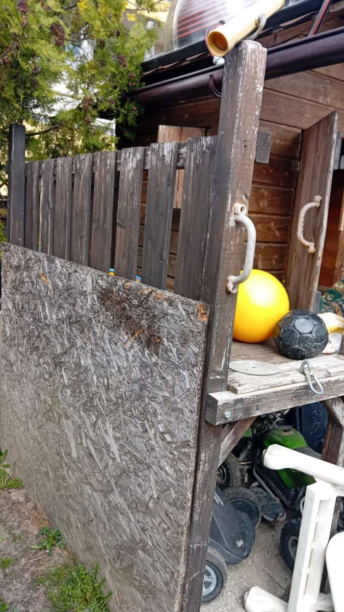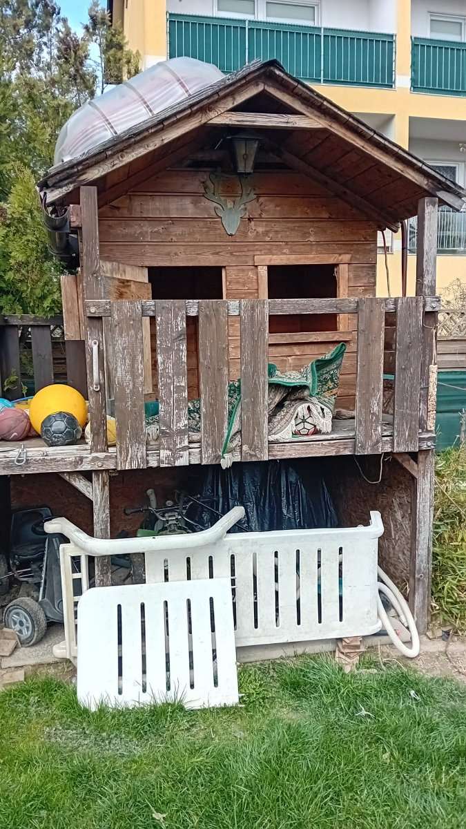 Kinderspielhaus zu verschenken. Stehen/Pfahlbau. Für Bastler. Bitte um Selbst Abbau und Selbst Transport! Bitte eigenes Werkzeug mitbringen! Maße ca 2,50x2 m , Höhe ca. 3 m.