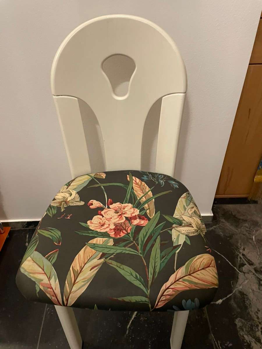 Weißer Vollholz Sessel mit schönem floralem Muster