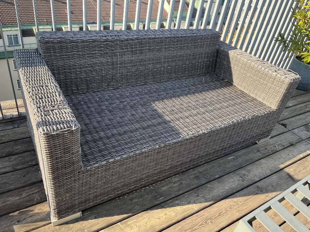 Rattan Couch Grau