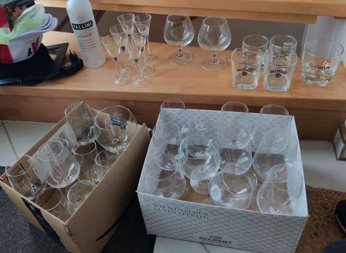 Die verschiedensten Gläser, Weingläser, Whiskygläser, Conjakgläser, Suggestivgläser, Degestivgläser, Biergläser.... Der verschiedensten Marken