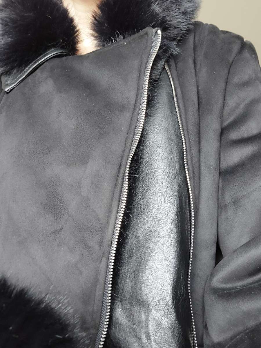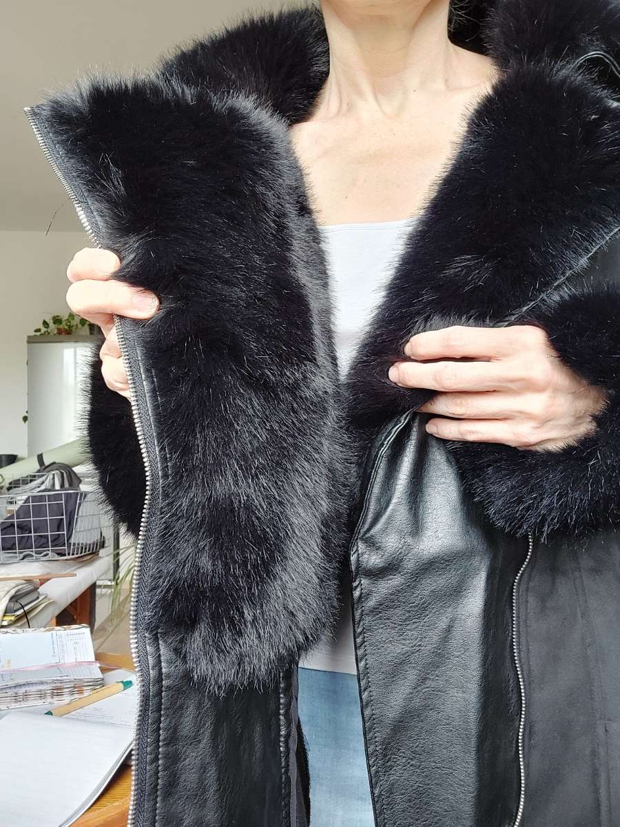 Schwarzen neuwertigen Mantel, Leder mit Pelz