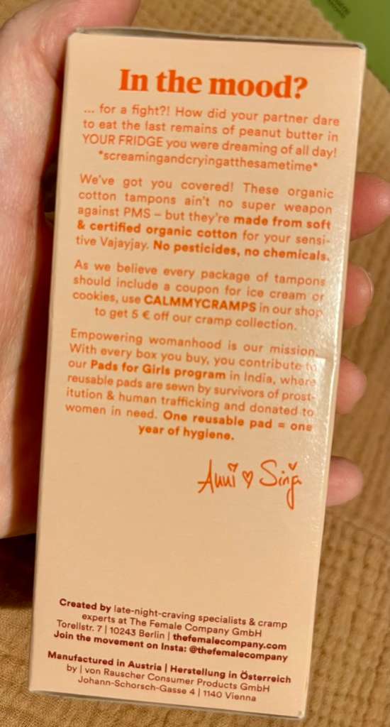Ich verschenke eine oirigniale Box The Female Company Bio-Tampons – mit hochwertigem Inhalt. 100% Bio-Baumwolle, dermatologisch getestet. Highlights: • 16 Stück – Bio-Tampons in edler Box • 100% zertifizierte Bio-Baumwolle • Dermatologisch getestet, Made...