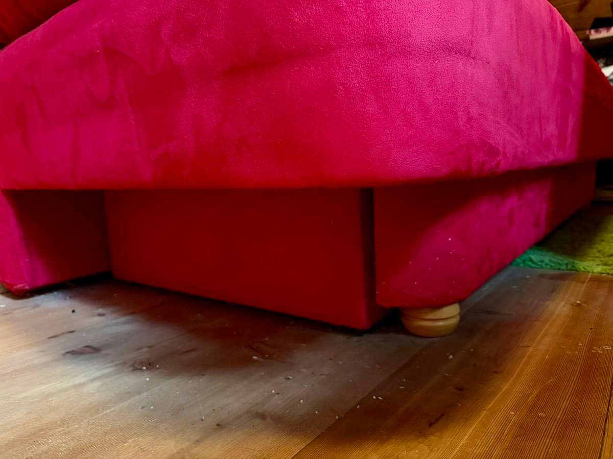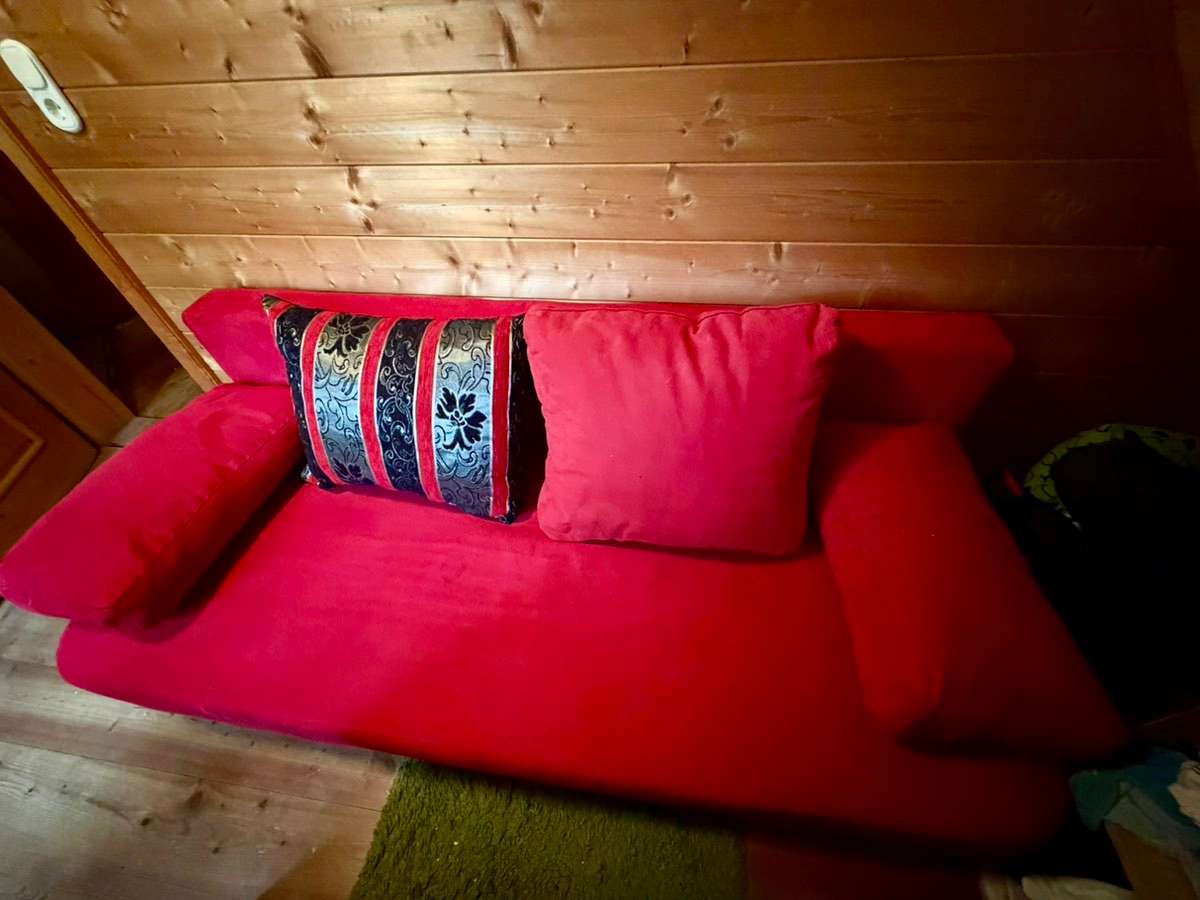 Rotes Schlafsofa – kostenlos abzugeben Umbaubar zu Doppelbett Länge 1,95m Breite 0,90m Höhe 0,80m Sitzhöhe 0,45m Bequemes Sofa in kräftigem Rot. Inklusive Zierkissen. Ideal für Gästezimmer, Ferienhaus, Kellerlounge oder als Übergangslösung. Stoff ist...