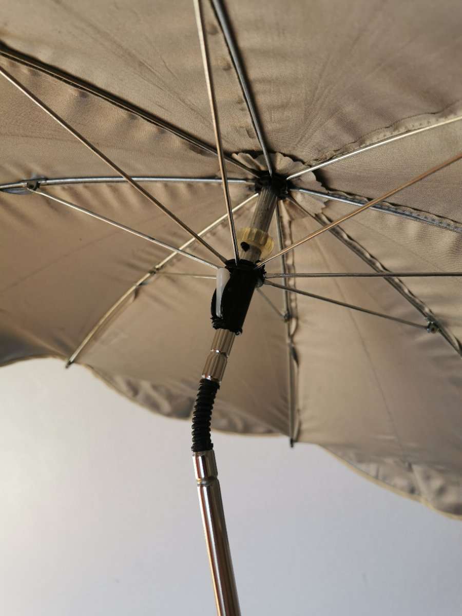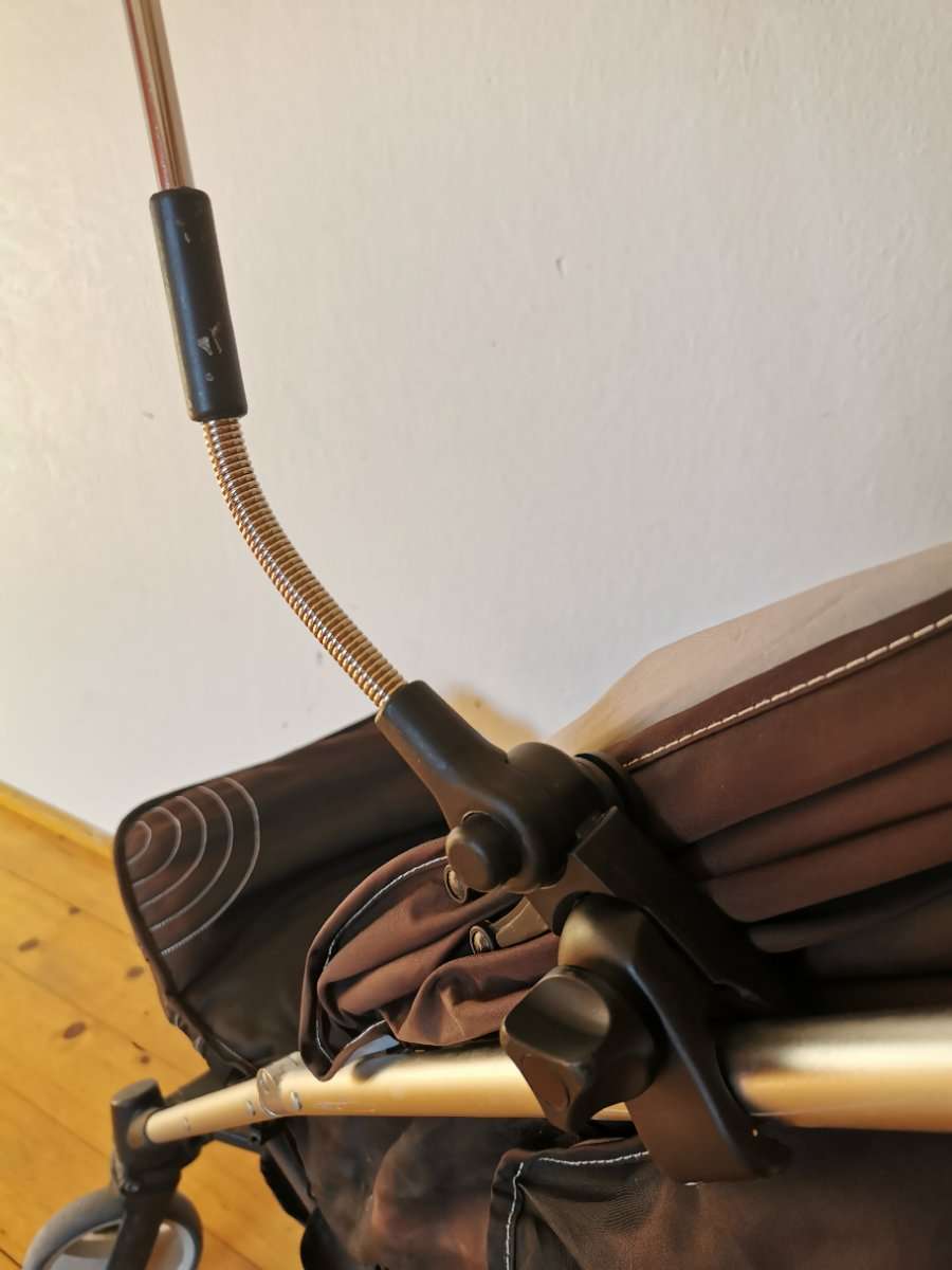 Sonnenschirm für Kinderwagen oder Buggy mit Schraub- bzw. Klemmbefestigung, unten und oben Federverstellung, Durchmesser ca. ... cm Privatverkauf, daher keine Gewährleistung und/oder Garantie!