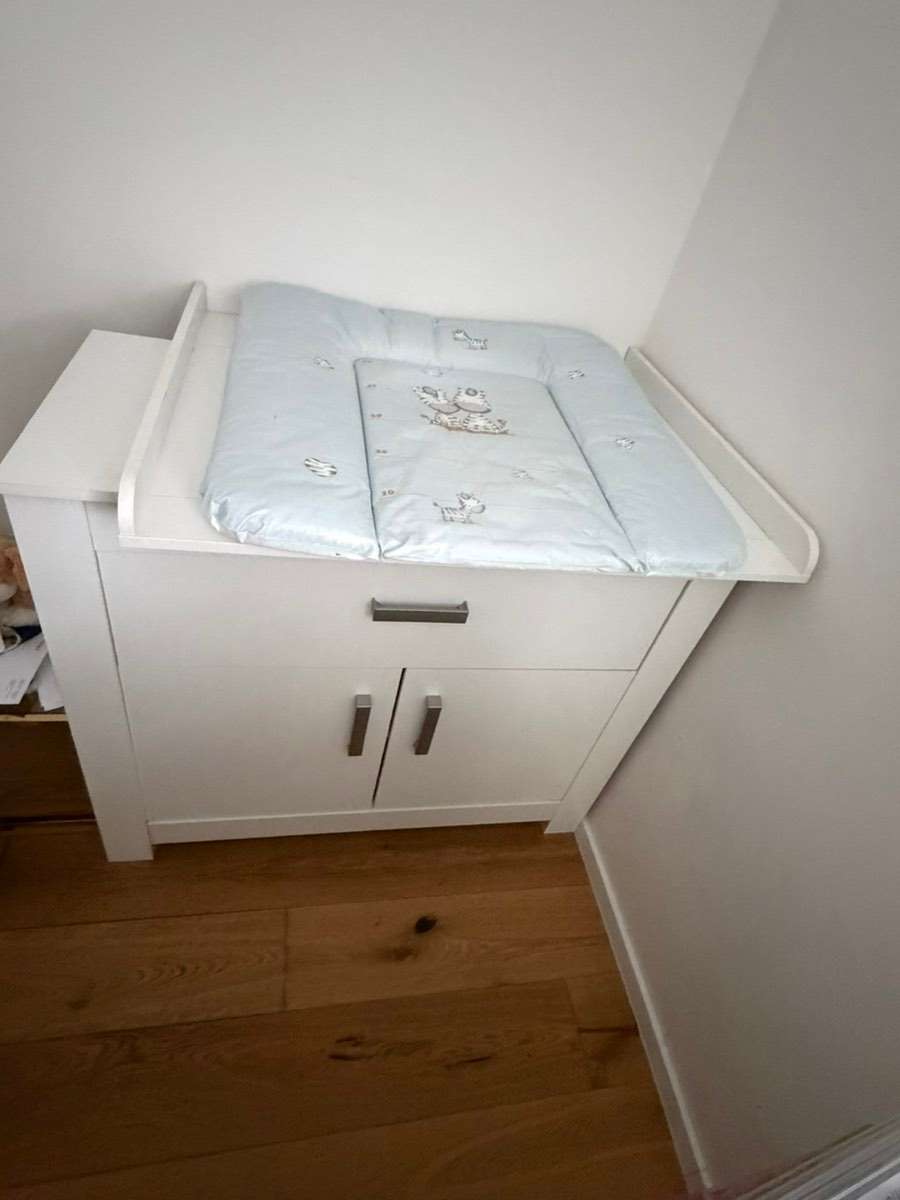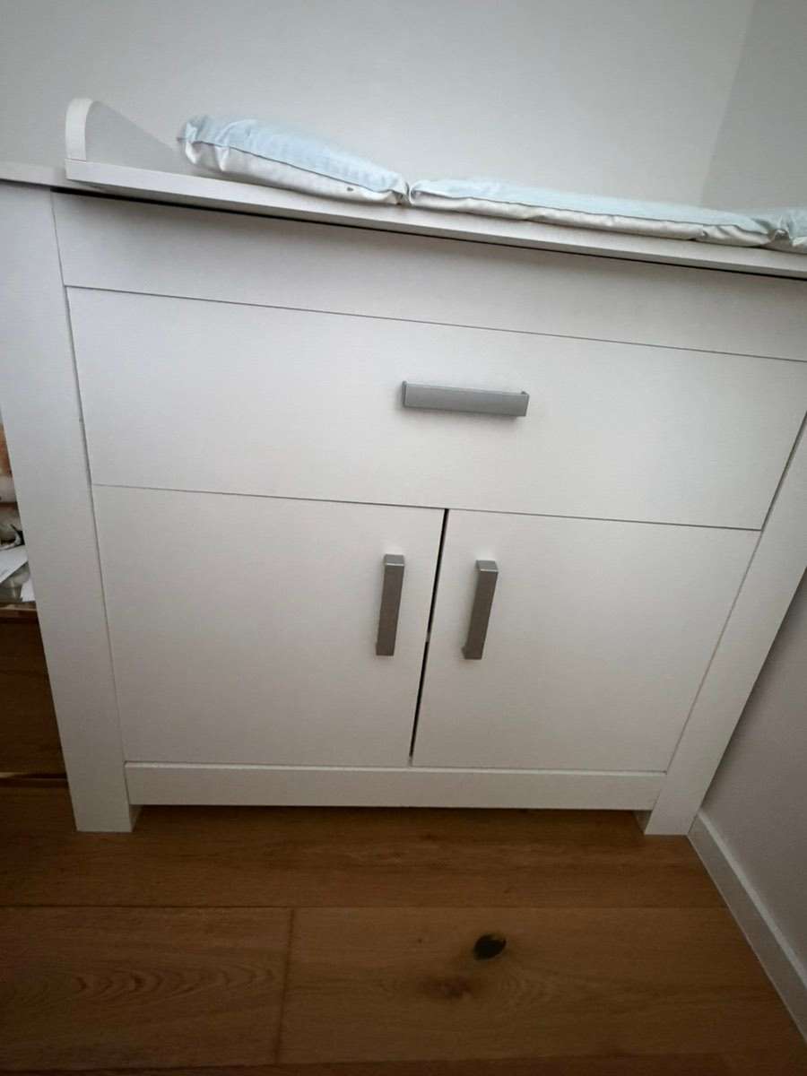 Funktioniert einwandfrei, nichts kaputt oder zerkratzt. Oben ist eine geräumige Schublade und unten ein Kasten. Maße siehe Fotos. Gekauft beim XXXLutz. Wickelauflage vom Babyshop.