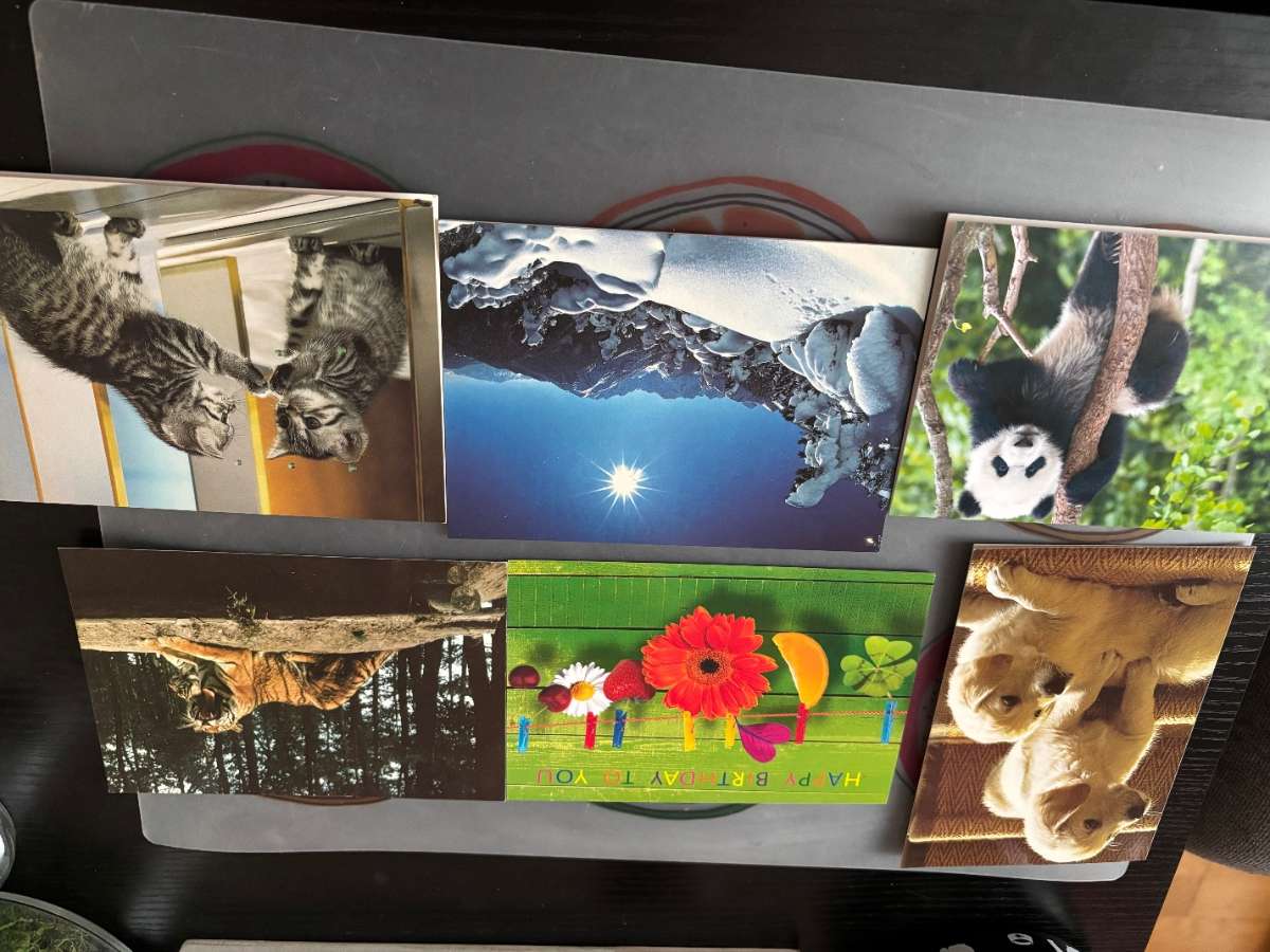 Verschenke diverse Grußkarten, am liebsten alle gemeinsam