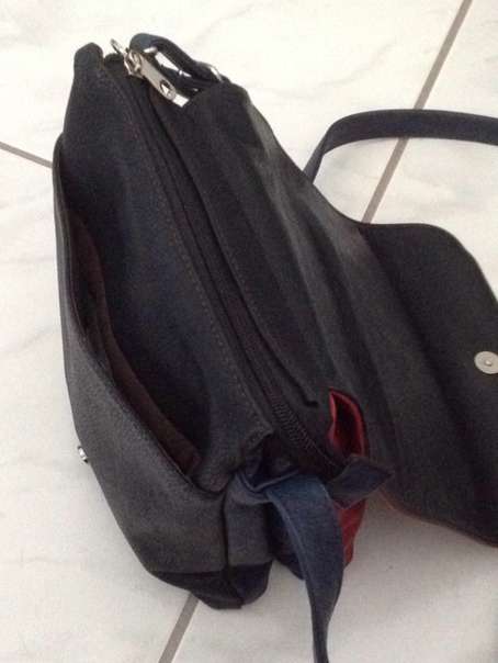 Handtasche aus Kunstleder, rot-schwarz-blau, Innenfutter braun, viele Zipptaschen, etwa 23x27x15, Gebrauchsspuren (Tasche wird natürlich ohne Inhalt verkauft, Inhalt nur zwecks Fotos) Selbstabholung ausschließlich nach telefonischer Vereinbarung...