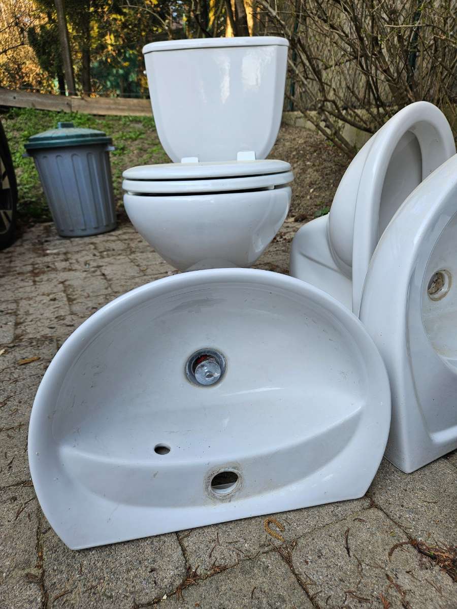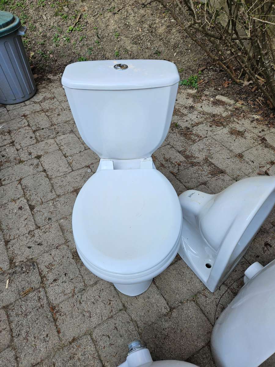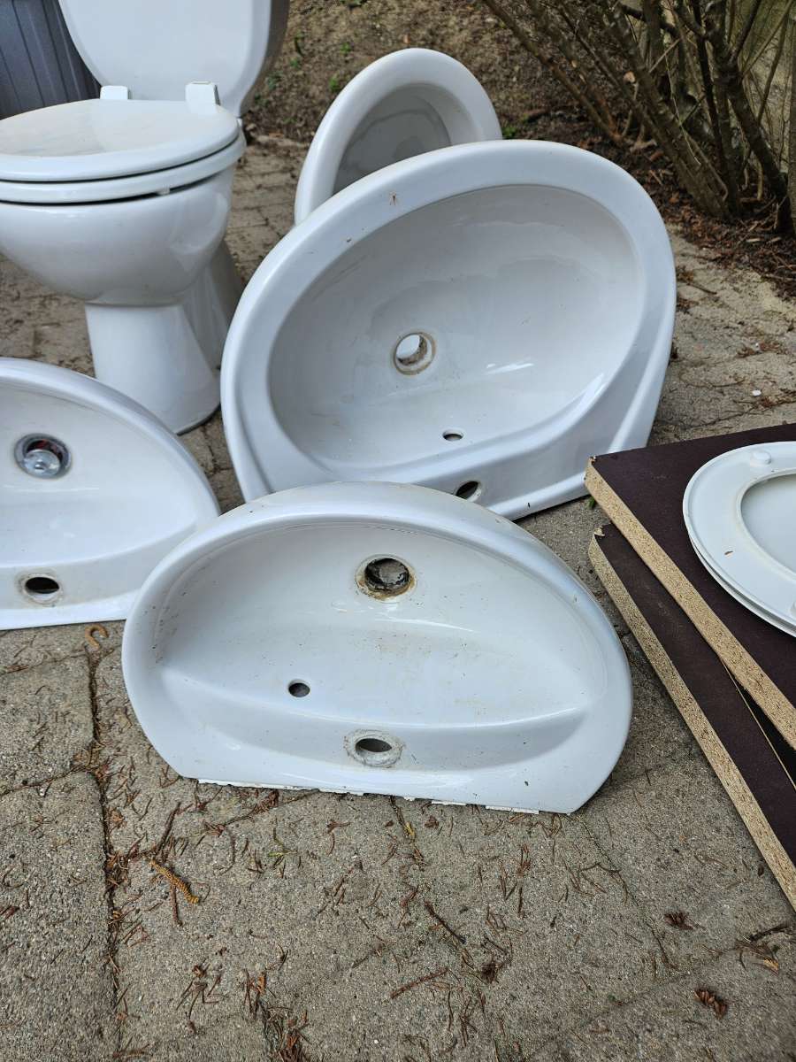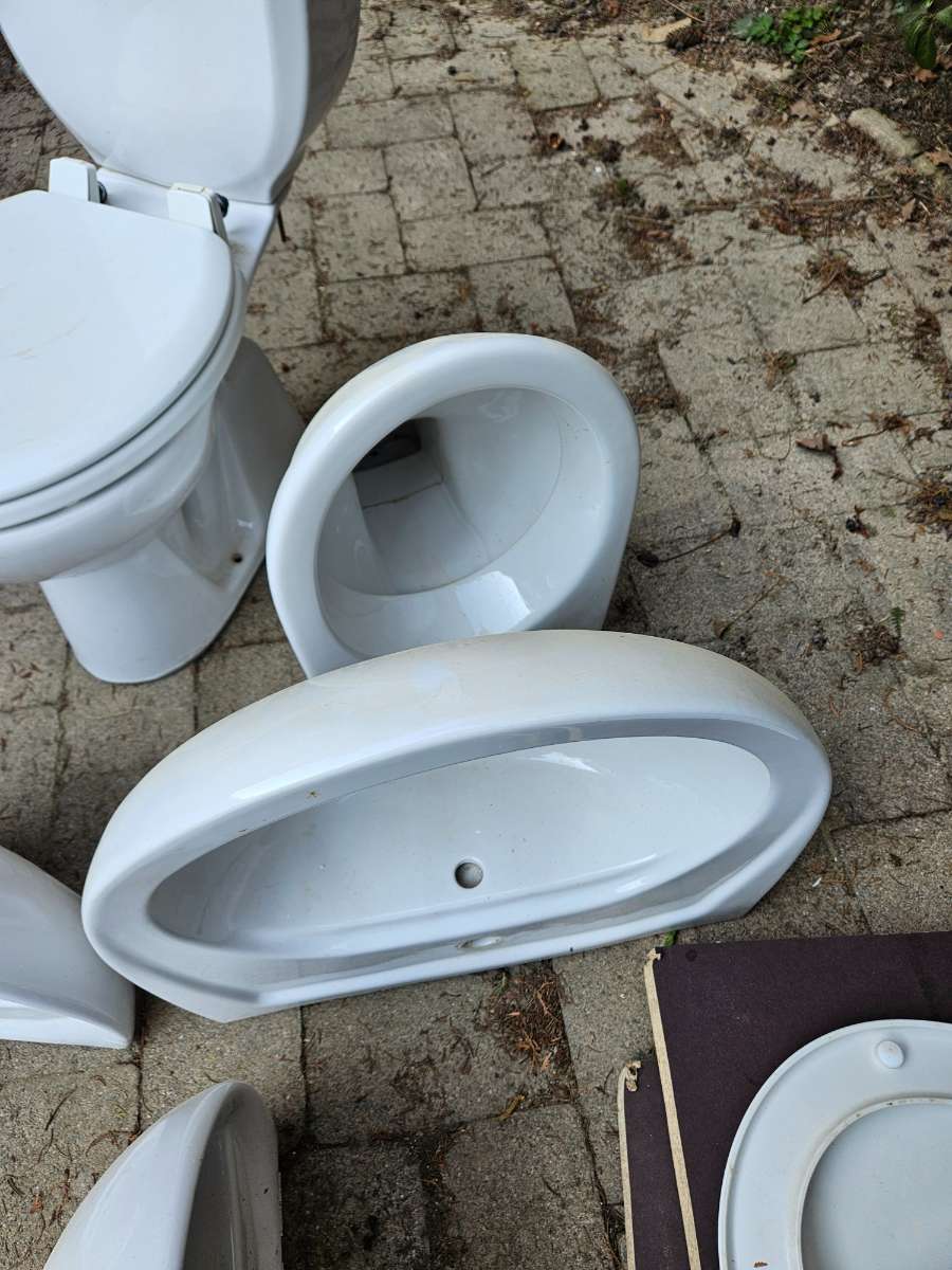 Verschenken WCs + großes Wadchbecken + kl. Handwaschbecken. Alle sind in Ordnung, aber gebraucht. Ohne Sprung und Dellen - nicht abgeschlagen.