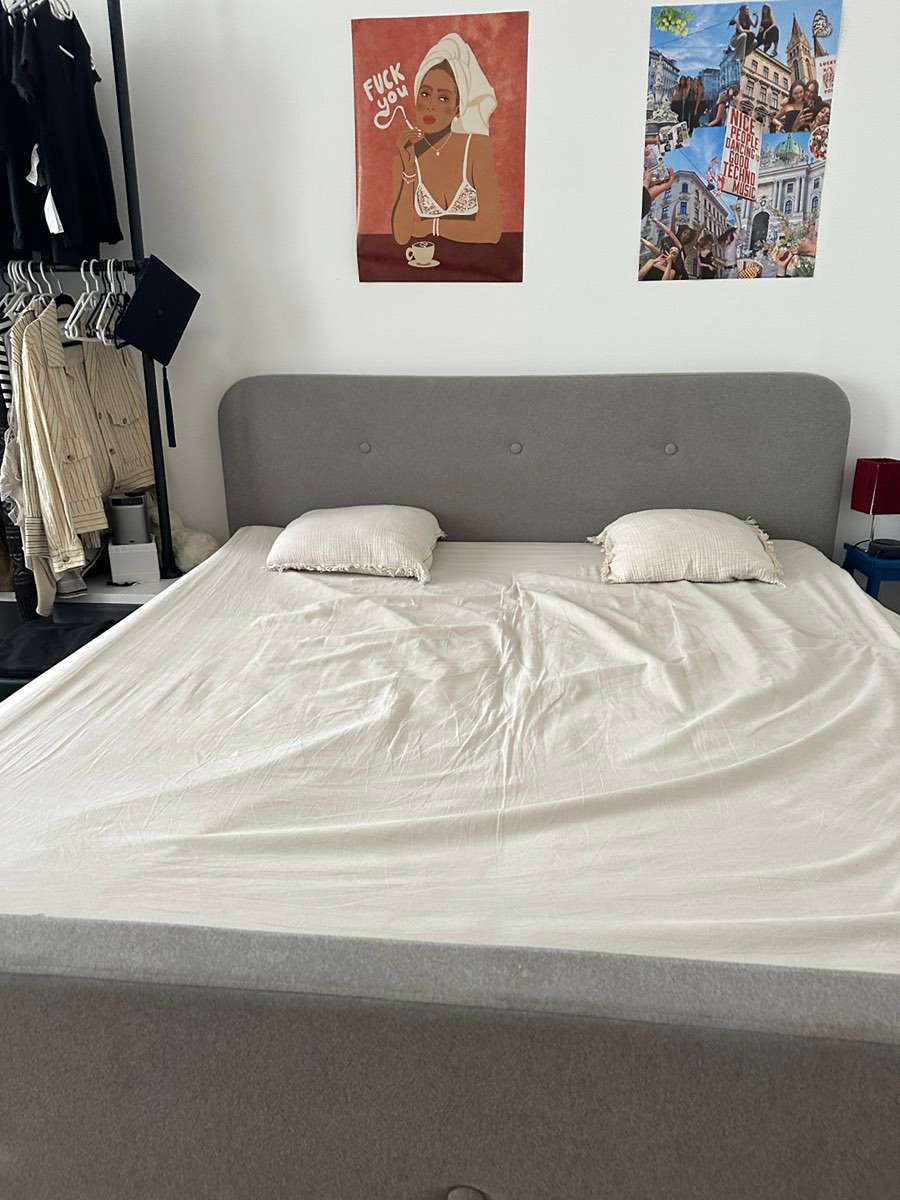 Es handelt sich nur um das Bettgestell. Ohne Matratze und ohne Lattenrost. Super leichtes Steck-System. Leicht auf und abzubauen! Nur 5 Teile. Das Bettgestell ist in der Mitte ein wenig schief. Das Teil in der Mitte muss allerdings nicht ersetzt werden,...
