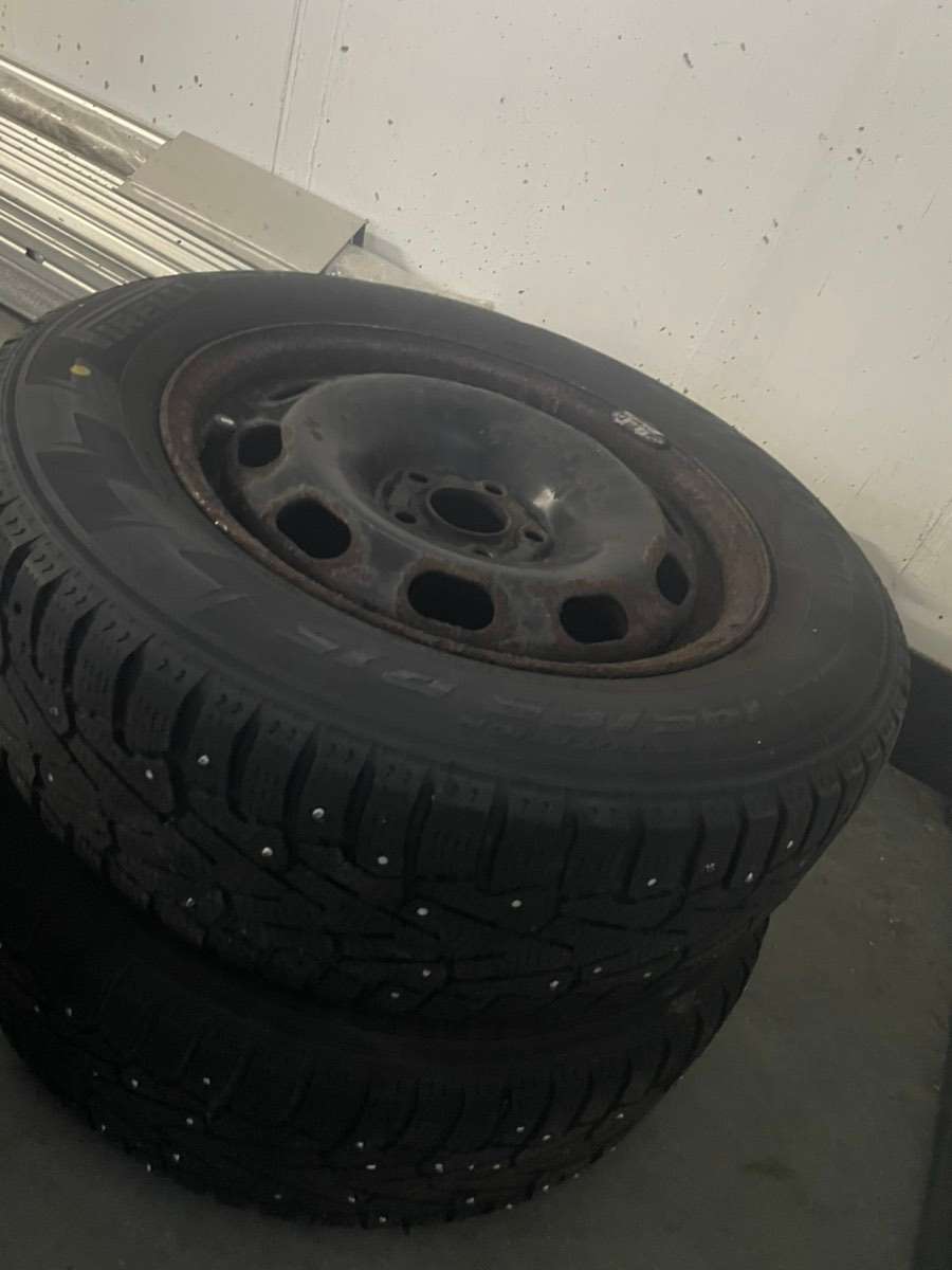 4 Stk. Stahlfelgen VW mit Spikereifen Lochkreis 5x100 195/65-15
