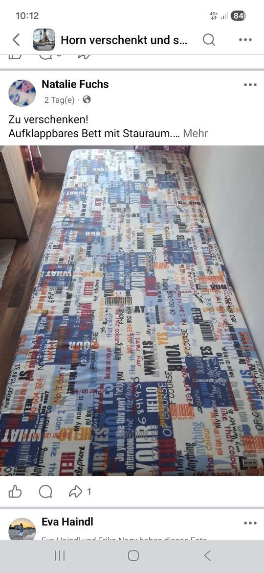 Zu verschenken! Aufklappbares Bett mit Stauraum. Ca. 70x200 Abzuholen in 3571 Gars