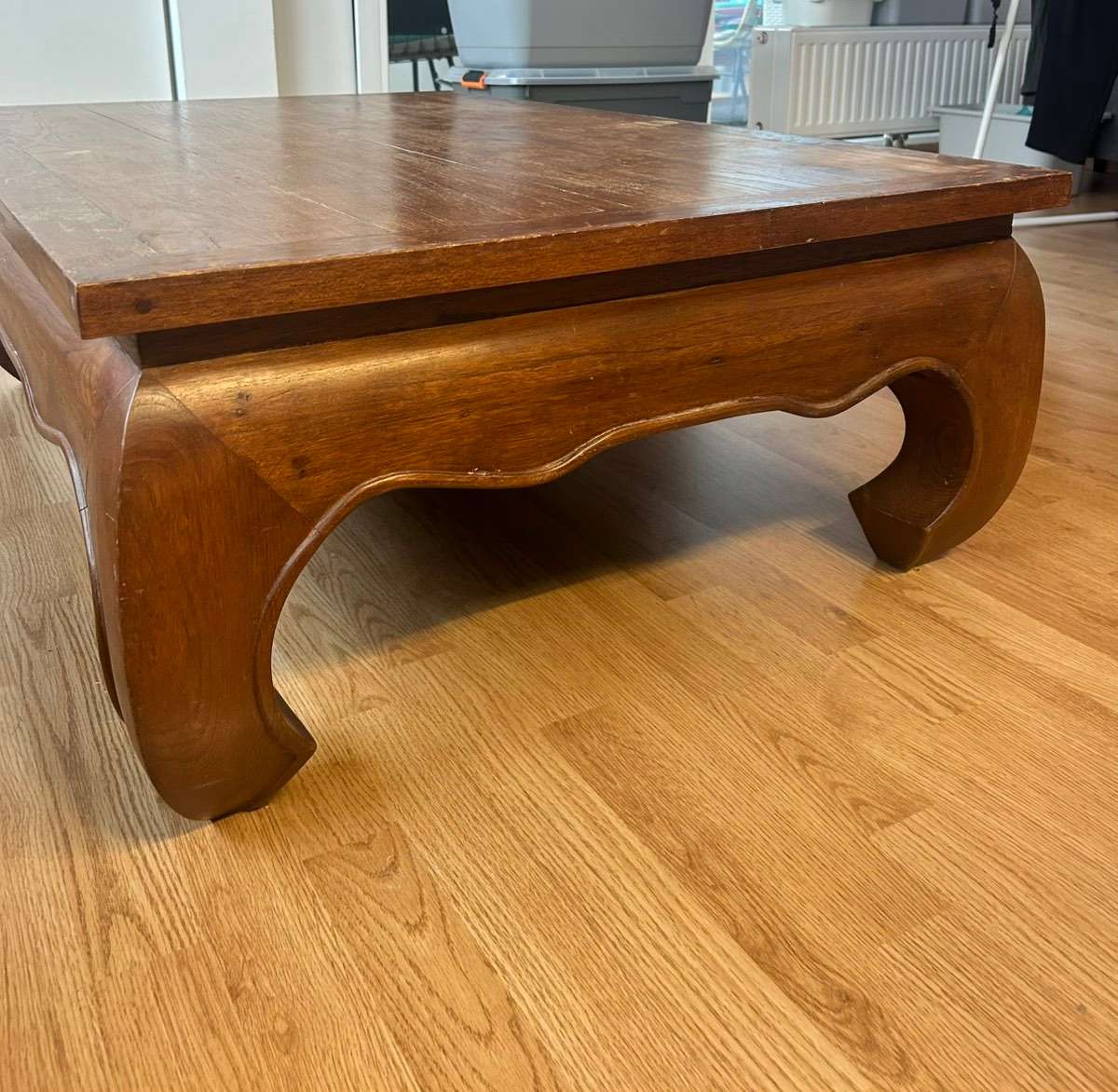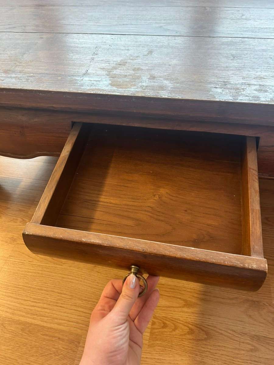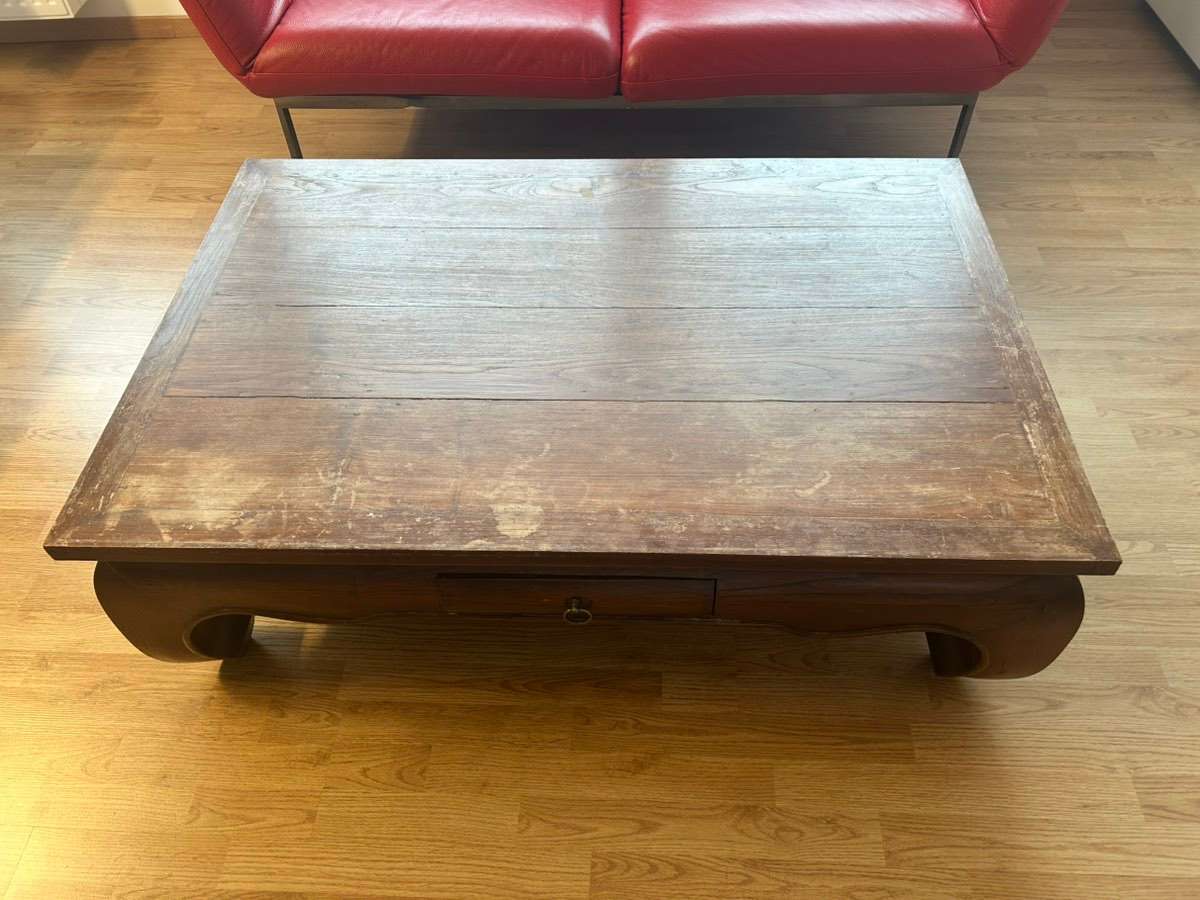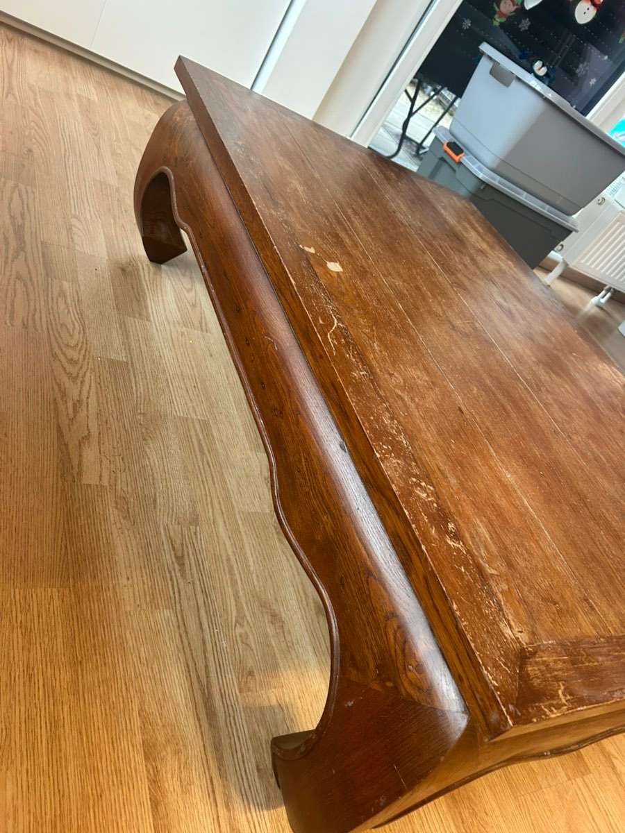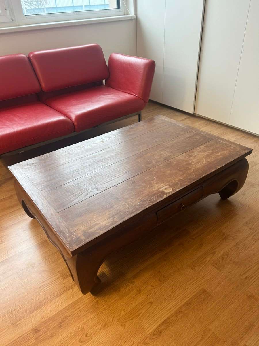 Echtholz / Vollholz Couchtisch – massiv Stabiler Vollholz-Couchtisch (kein Furnier, keine Pressspanplatte). Sehr schwer und robust, mit Schublade. Klassisches, zeitloses Design. Maße: 120 × 80 cm Höhe: 38,5 cm Zustand: Gebrauchsspuren auf der Oberfläche...