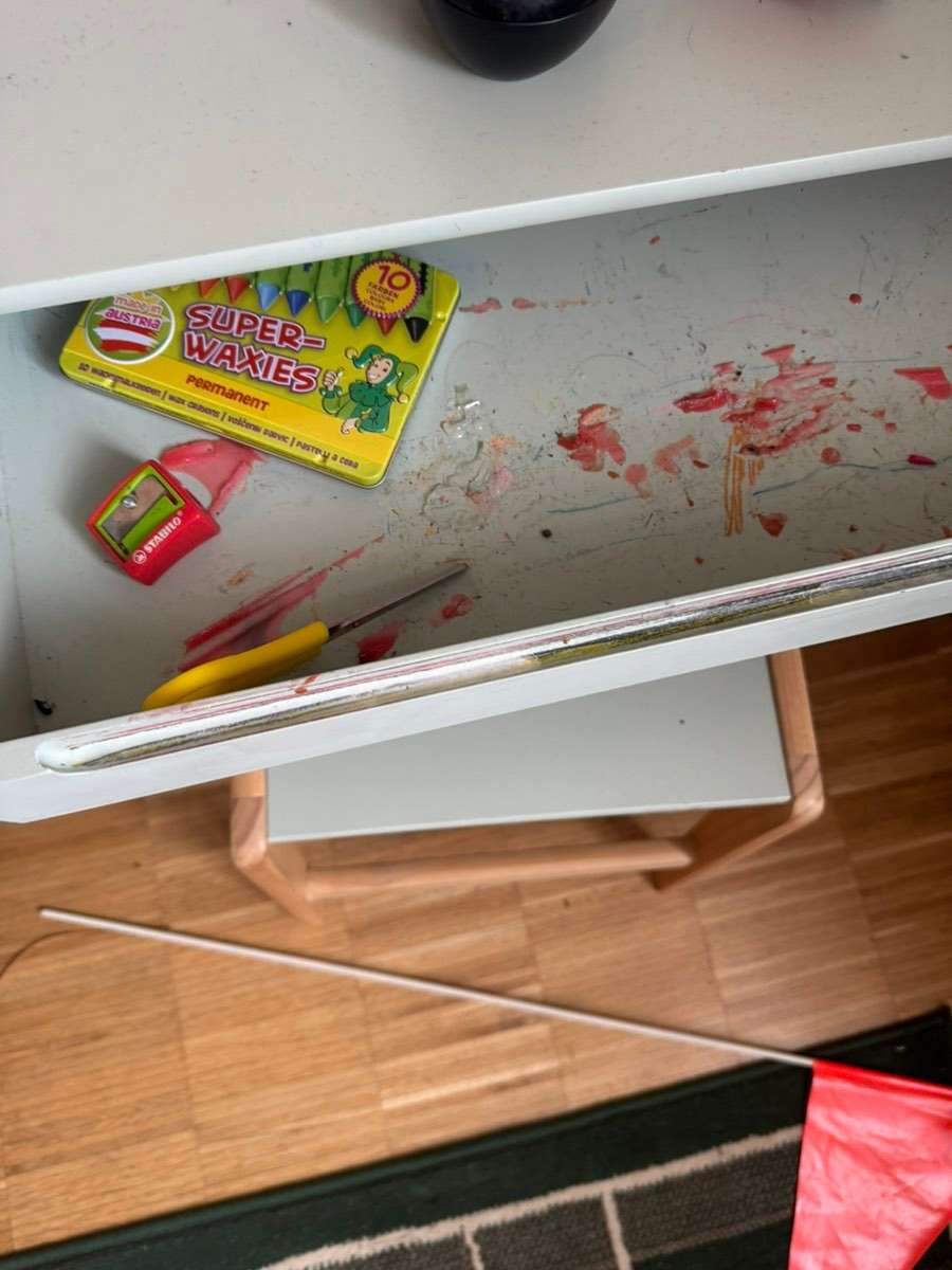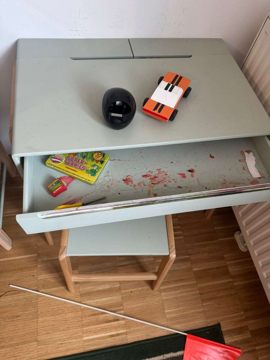 Kinderschreibtisch Schöner kleiner Schreibtisch für Kinder. Mit Schublade und Sitzbank. Maße: Tiefe: 46 cm Höhe: 63 cm Breite: 72 cm Normale Gebrauchsspuren. Nur Selbstabholung. keine Garantie, Gewährleistung oder Rücknahme.