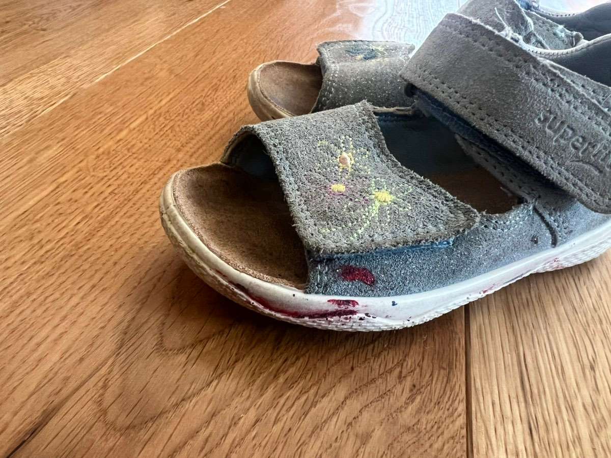 Gebrauchter Zustand, vorne haben die Schuhe etwas Acrylfarbe abbekommen. Bis 23.3. melden sonst kommen sie in den Müll.