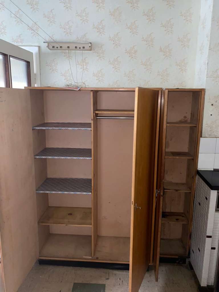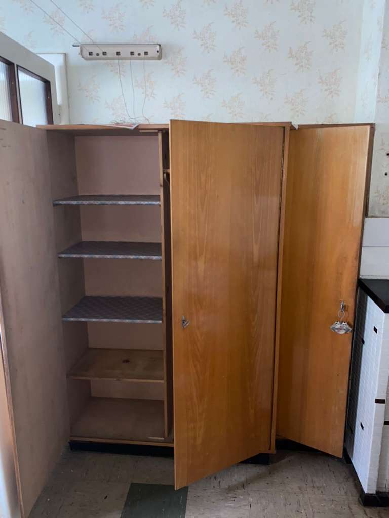 Vintage Schrank, defekt (Siehe Bild) zu verschenken. Bei Interesse gerne melden Ist an der Wand fest gemacht - muss selbst abmontiert werden. M