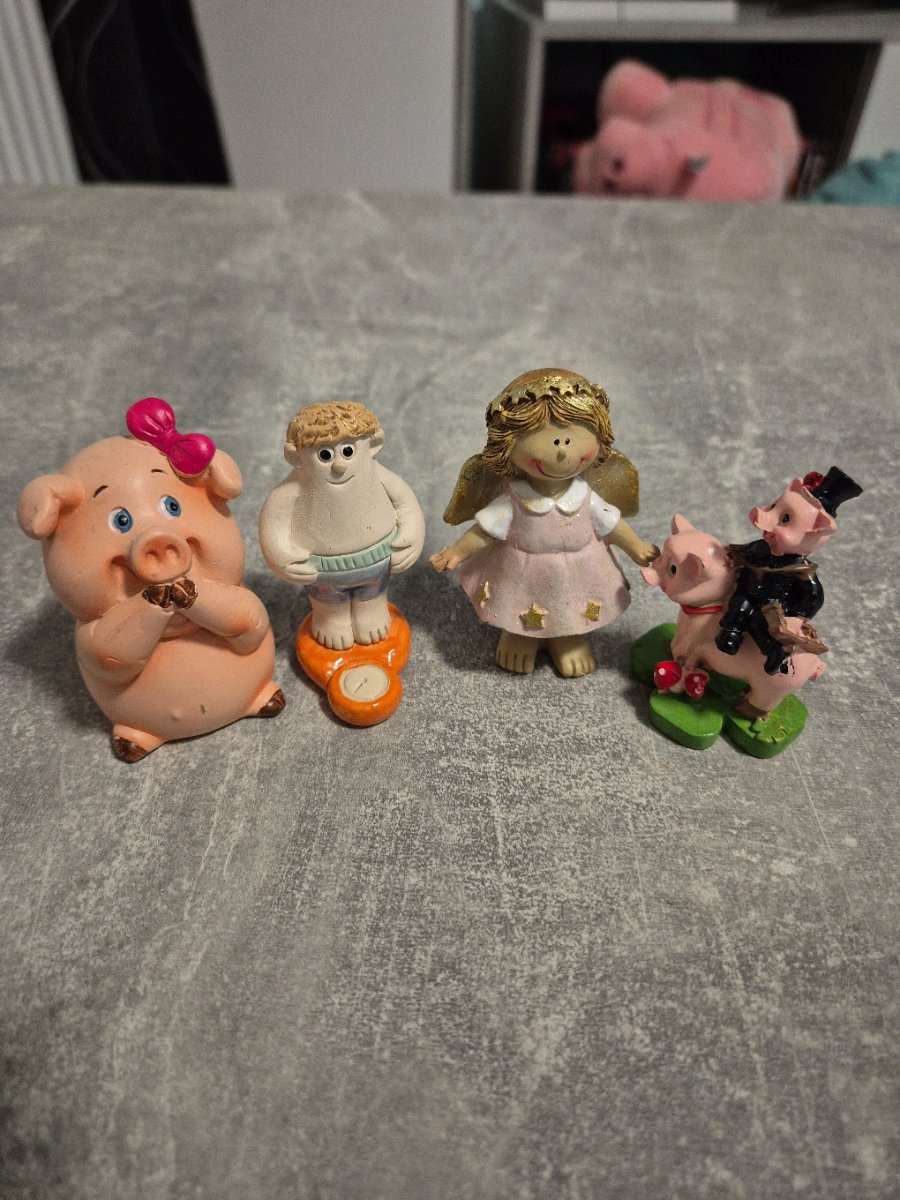 Verschenke 4 kleine Dekofiguren / Glücksbringer. verschiedene Motive guter gebrauchter Zustand ideal als Deko oder kleines Geschenk Abholung oder Versand möglich. Privatverkauf – keine Garantie oder Rücknahme.