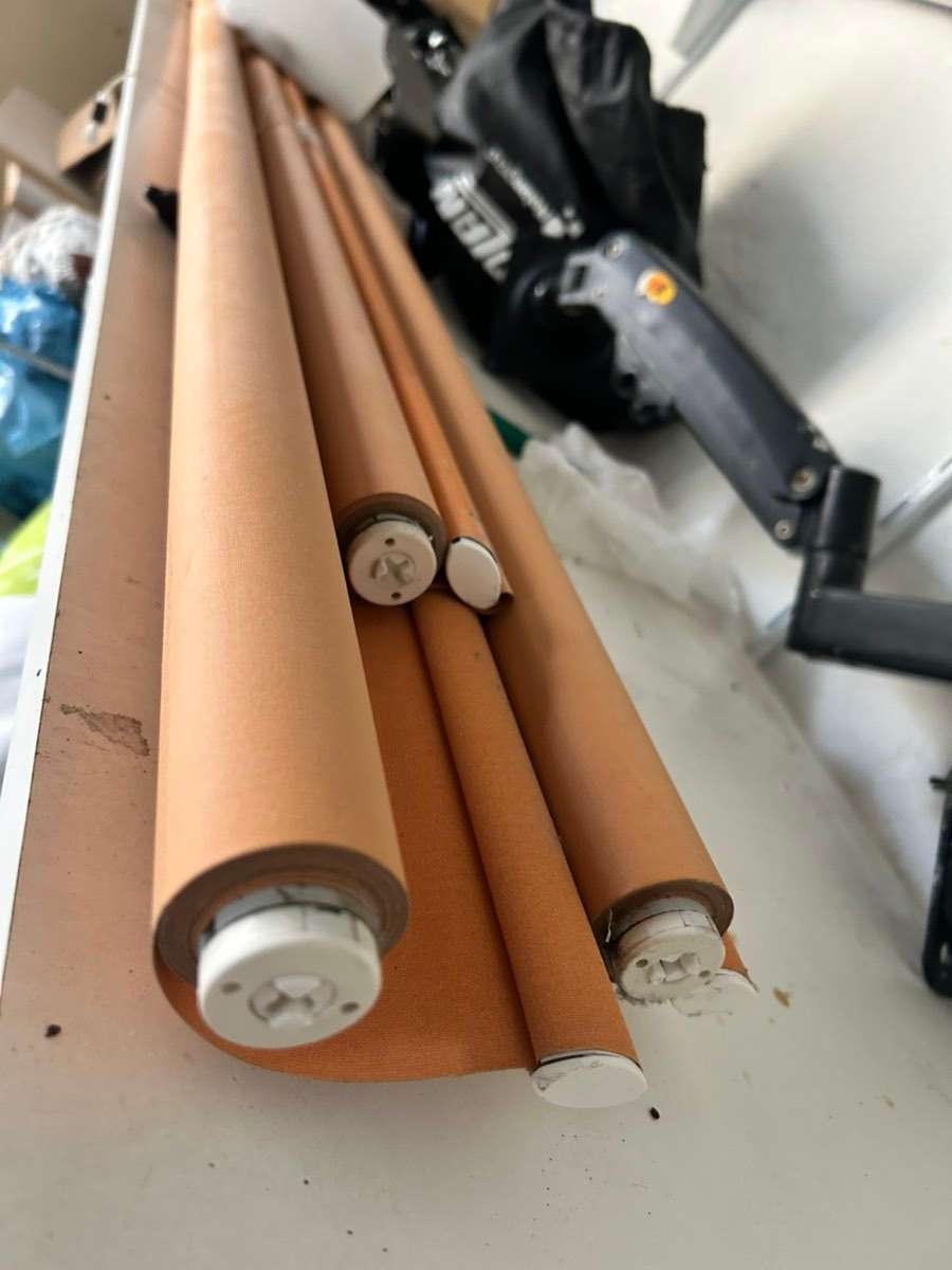 Verschenke abmontierte Verdunkelungsjalousien in der Farbe Terracotta mit Montagezubehör