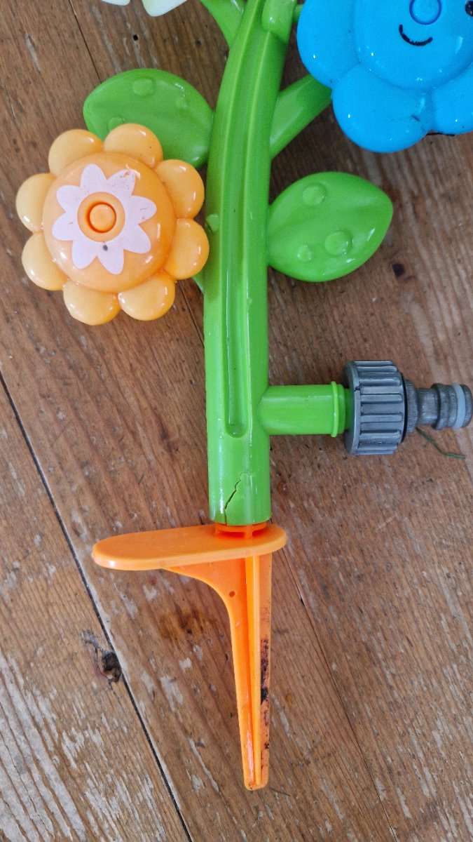 Einfach einen Gartenschlauch für Standard-Schlauchsysteme an den Sprinkler anschliessen. Mit dem beiliegenden Erdspiess wird das Modell im Gras befestigt, Wasser aufdrehen und schon kann der Spass losgehen. Die Blumen spritzen in alle Richtungen und...