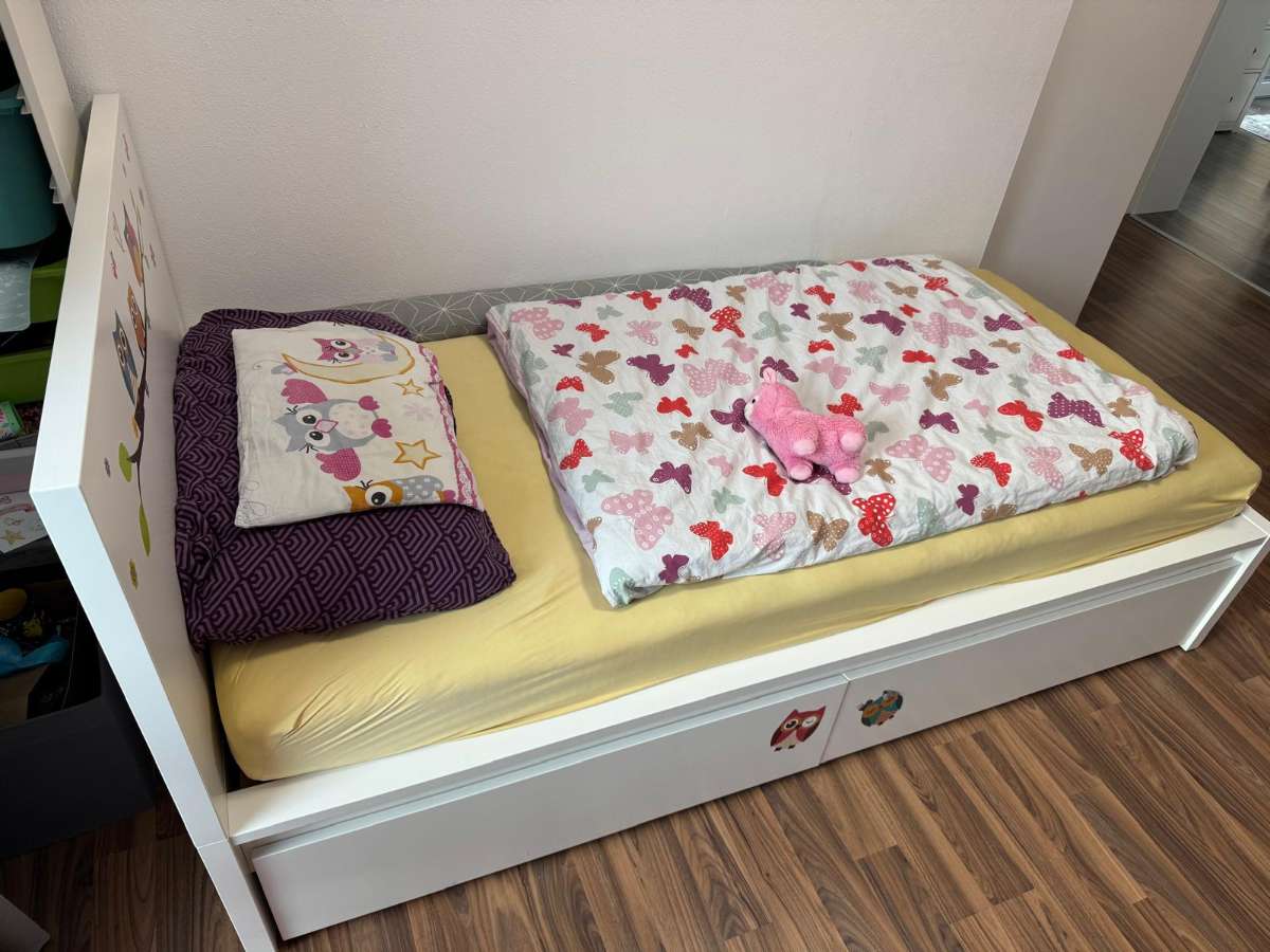 MALM Bett – weiß – 90x200 cm inkl. 2 Bettladen & Einsatz Preis: € 55,-- Zustand: gebraucht, gut erhalten Standort: 8933 St.Gallen Beschreibung Verkaufe ein IKEA MALM Bett in weiß , Größe 90x200 cm , inklusive 2 Bettladen für praktischen Stauraum. Das...