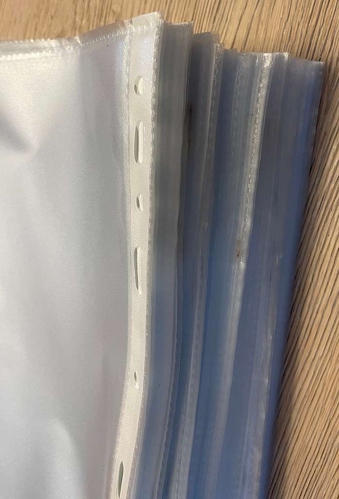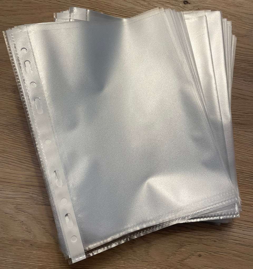 Stapel neuwertige Klarsichtfolien Format A5.